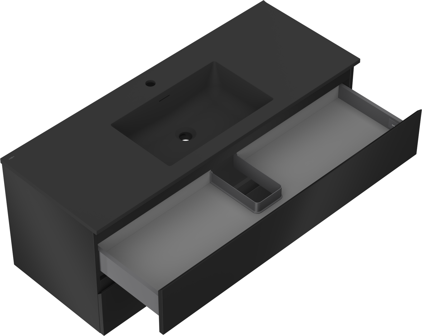 Mexen Orio badkamerkast 120 cm met Otis wastafel, 2 lades, zwart mat - 91A10-12047-2-BFF71-W18M71