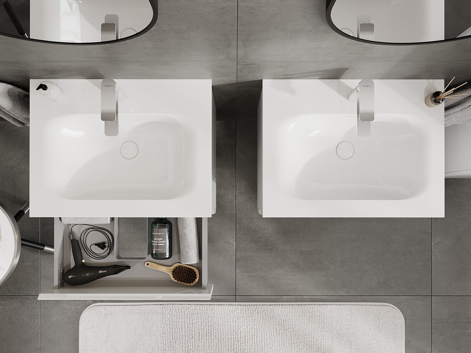 Onze modulaire badkamermeubels kunnen in verschillende kleurconfiguraties met elkaar worden gecombineerd, wat volledige personalisatie mogelijk maakt. Zowel het uiterlijk als de functies van de afzonderlijke elementen kunnen worden gekozen, waardoor de meubels kunnen worden aangepast aan persoonlijke stijlvoorkeuren en gebruikswensen.