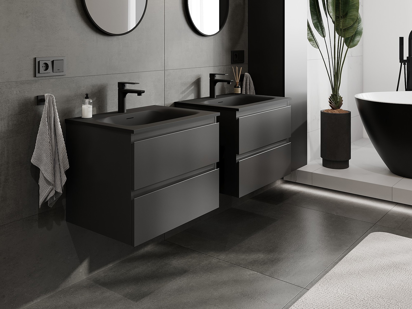 Onze modulaire badkamermeubels kunnen in verschillende kleurconfiguraties met elkaar worden gecombineerd, wat volledige personalisatie mogelijk maakt. Zowel het uiterlijk als de functies van de afzonderlijke elementen kunnen worden gekozen, waardoor de meubels kunnen worden aangepast aan persoonlijke stijlvoorkeuren en gebruikswensen.