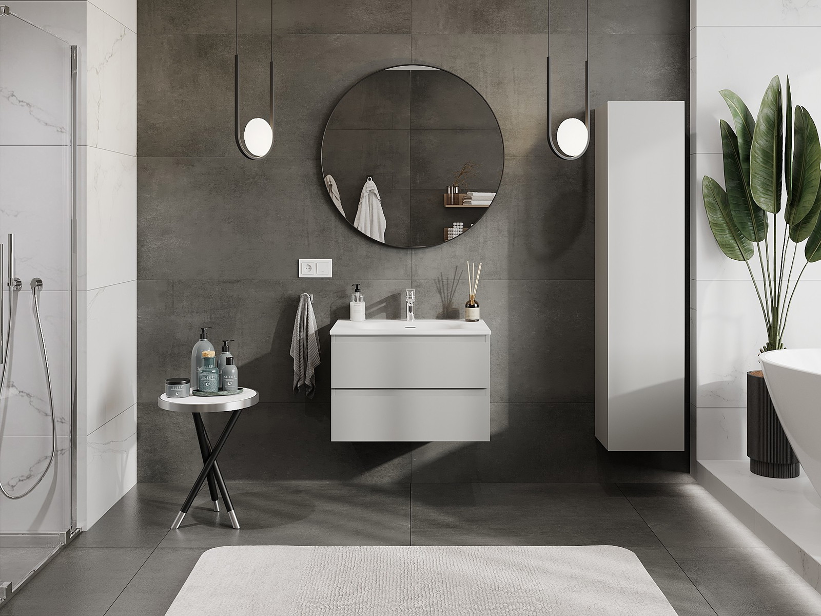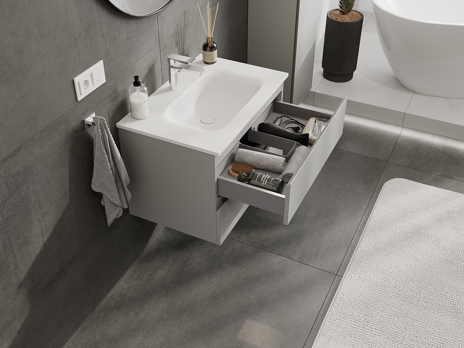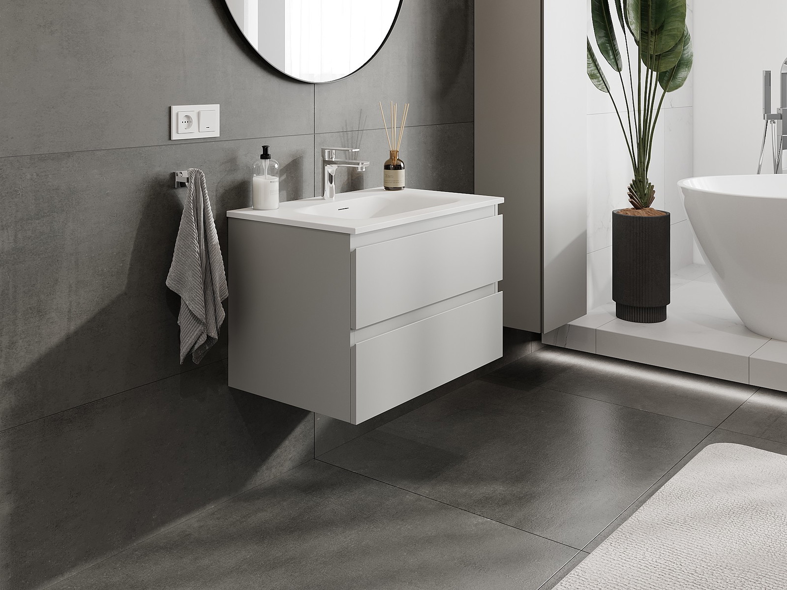 Onze modulaire badkamermeubels kunnen in verschillende kleurconfiguraties met elkaar worden gecombineerd, wat volledige personalisatie mogelijk maakt. Zowel het uiterlijk als de functies van de afzonderlijke elementen kunnen worden gekozen, waardoor de meubels kunnen worden aangepast aan persoonlijke stijlvoorkeuren en gebruikswensen.