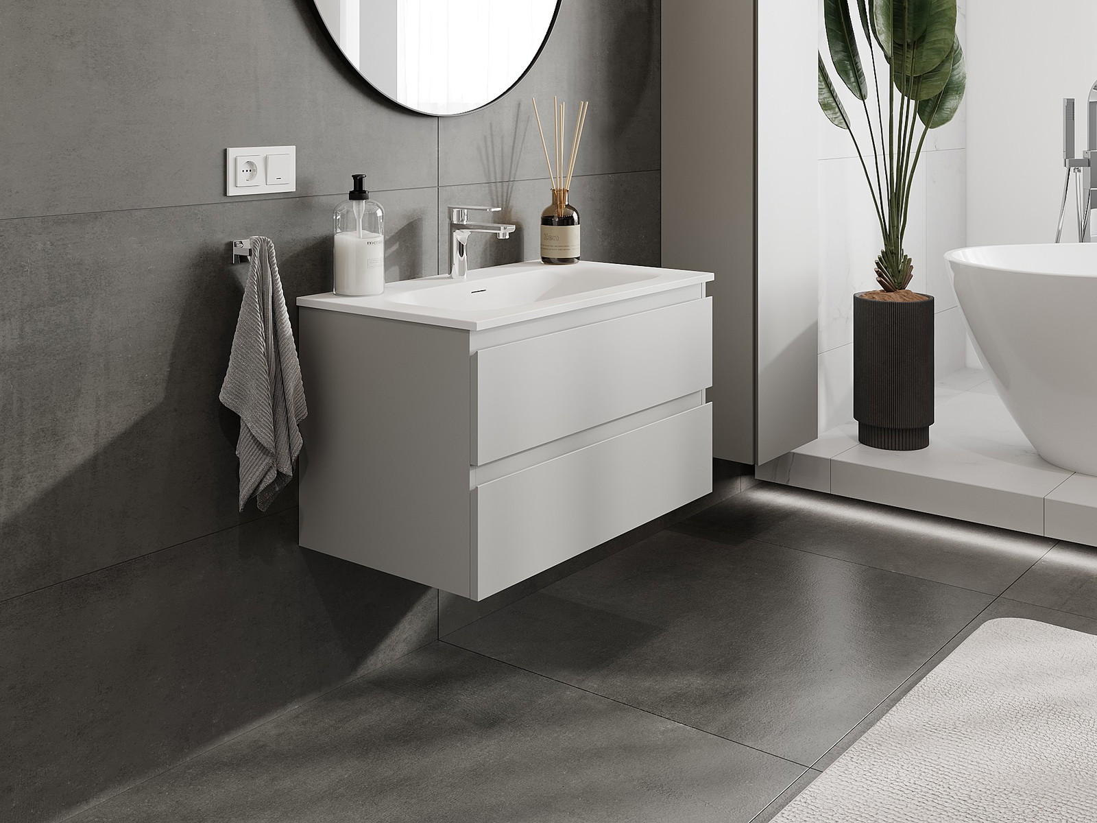 Onze modulaire badkamermeubels kunnen in verschillende kleurconfiguraties met elkaar worden gecombineerd, wat volledige personalisatie mogelijk maakt. Zowel het uiterlijk als de functies van de afzonderlijke elementen kunnen worden gekozen, waardoor de meubels kunnen worden aangepast aan persoonlijke stijlvoorkeuren en gebruikswensen.