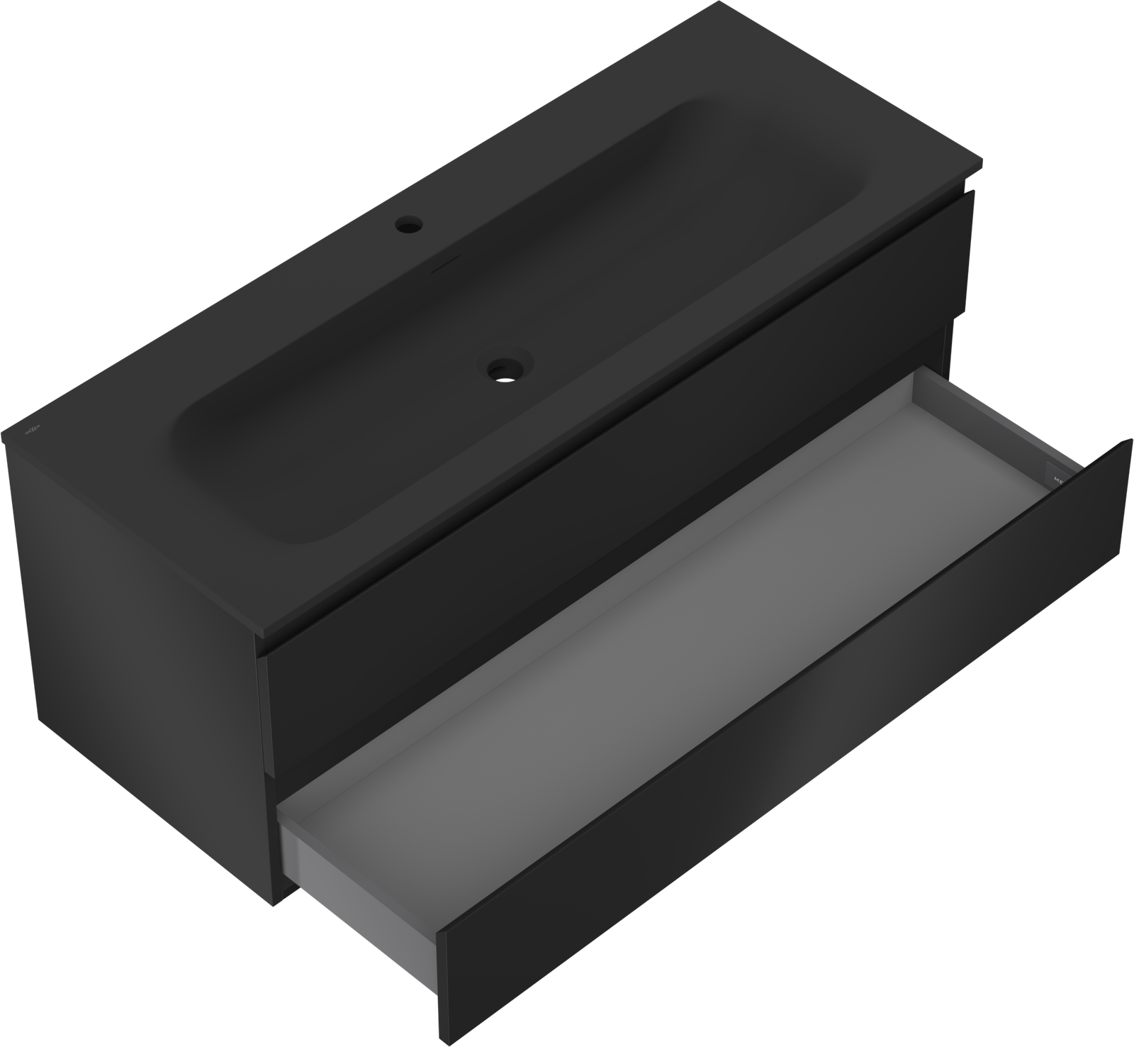 De uitsparing in de lade is zo ontworpen dat het de sifon kan bevatten, die noodzakelijk is in wastafelinstallaties. Hierdoor kan het meubel volledig functioneel worden gemonteerd, zonder dat er ruimte in de lade opgeofferd hoeft te worden voor installatiedoeleinden.