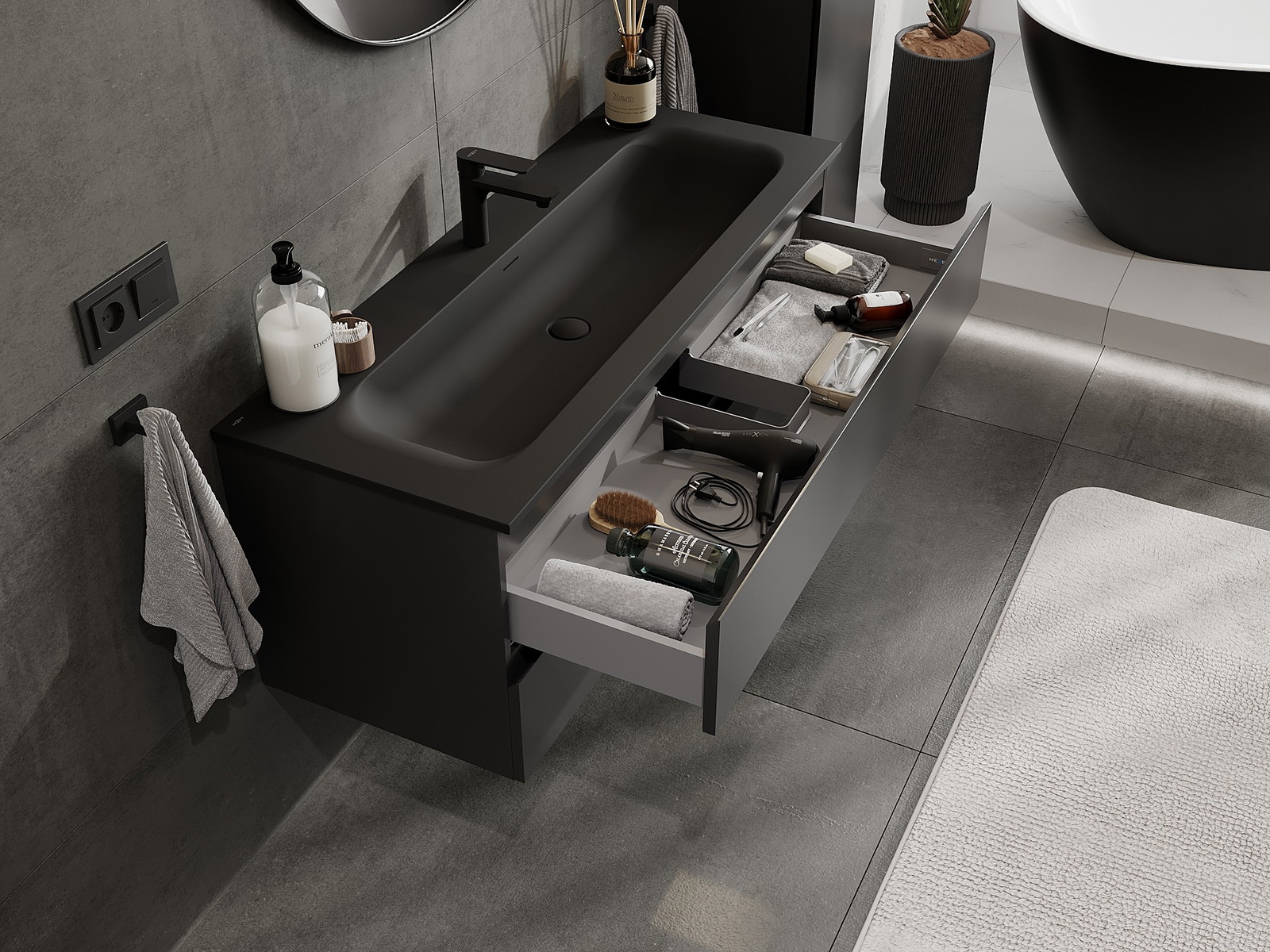 Onze modulaire badkamermeubels kunnen in verschillende kleurconfiguraties met elkaar worden gecombineerd, wat volledige personalisatie mogelijk maakt. Zowel het uiterlijk als de functies van de afzonderlijke elementen kunnen worden gekozen, waardoor de meubels kunnen worden aangepast aan persoonlijke stijlvoorkeuren en gebruikswensen.