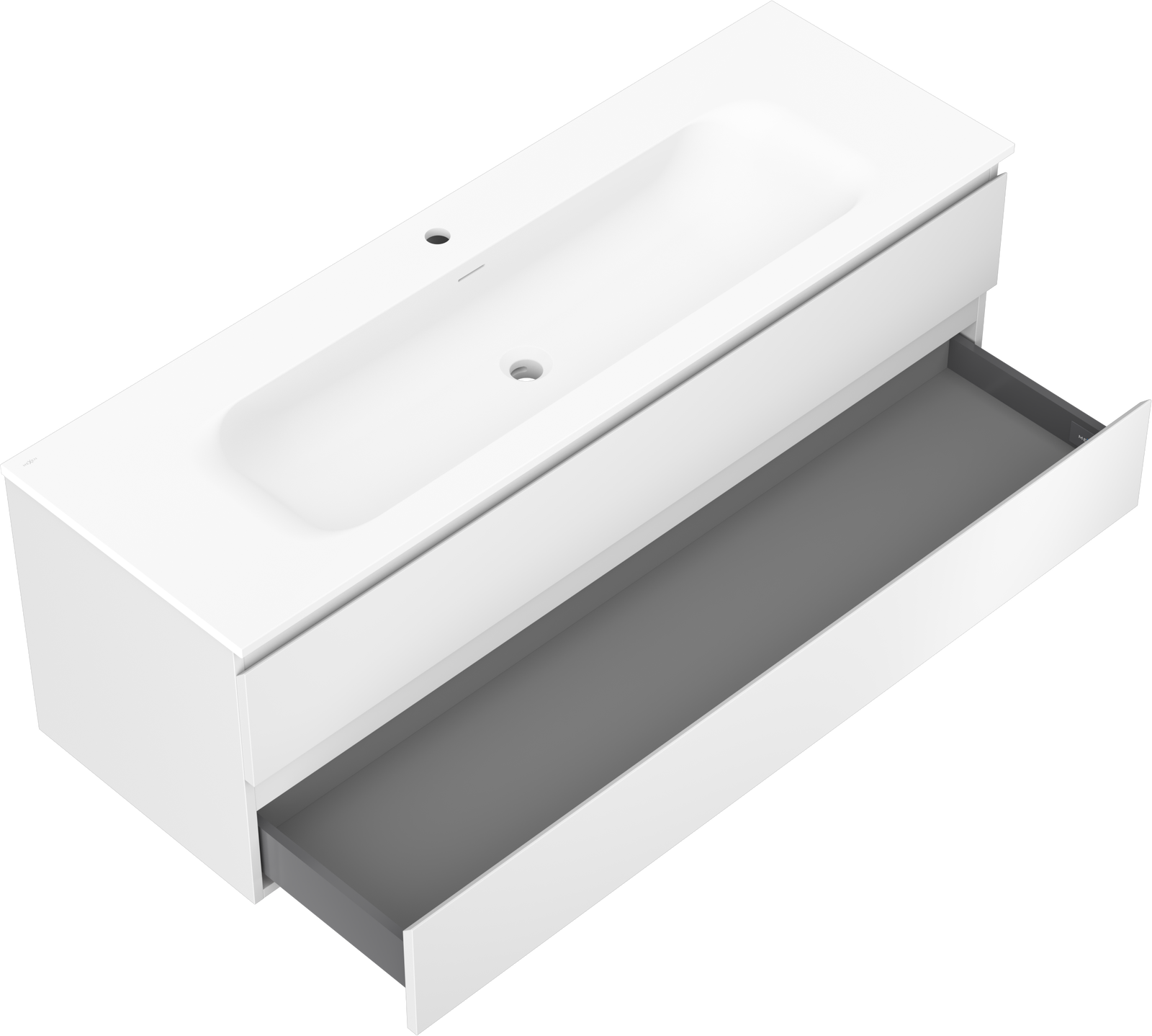 De uitsparing in de lade is zo ontworpen dat het de sifon kan bevatten, die noodzakelijk is in wastafelinstallaties. Hierdoor kan het meubel volledig functioneel worden gemonteerd, zonder dat er ruimte in de lade opgeofferd hoeft te worden voor installatiedoeleinden.