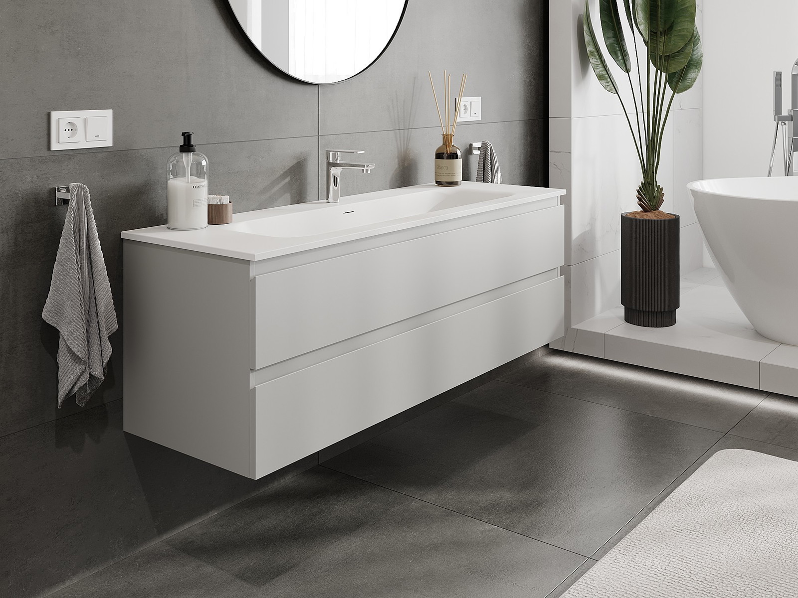 Onze modulaire badkamermeubels kunnen in verschillende kleurconfiguraties met elkaar worden gecombineerd, wat volledige personalisatie mogelijk maakt. Zowel het uiterlijk als de functies van de afzonderlijke elementen kunnen worden gekozen, waardoor de meubels kunnen worden aangepast aan persoonlijke stijlvoorkeuren en gebruikswensen.