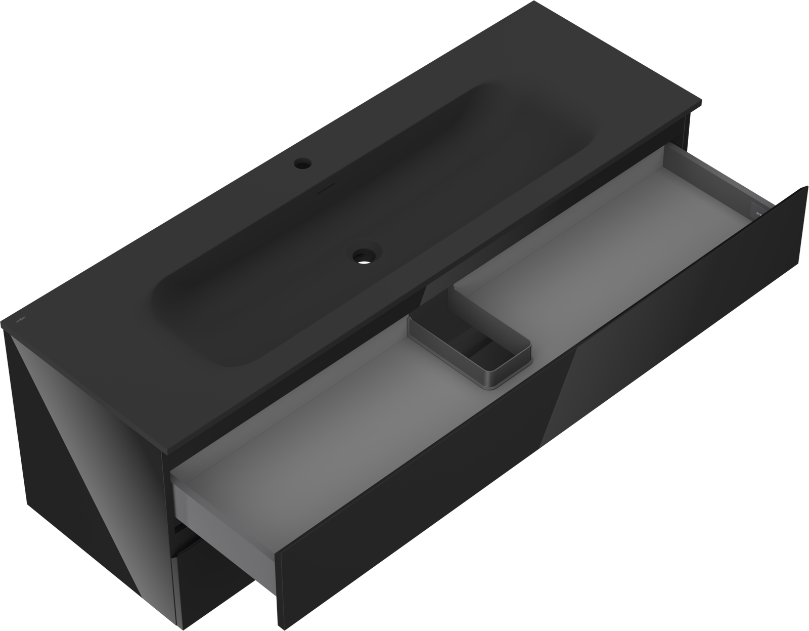 De uitsparing in de lade is zo ontworpen dat het de sifon kan bevatten, die noodzakelijk is in wastafelinstallaties. Hierdoor kan het meubel volledig functioneel worden gemonteerd, zonder dat er ruimte in de lade opgeofferd hoeft te worden voor installatiedoeleinden.