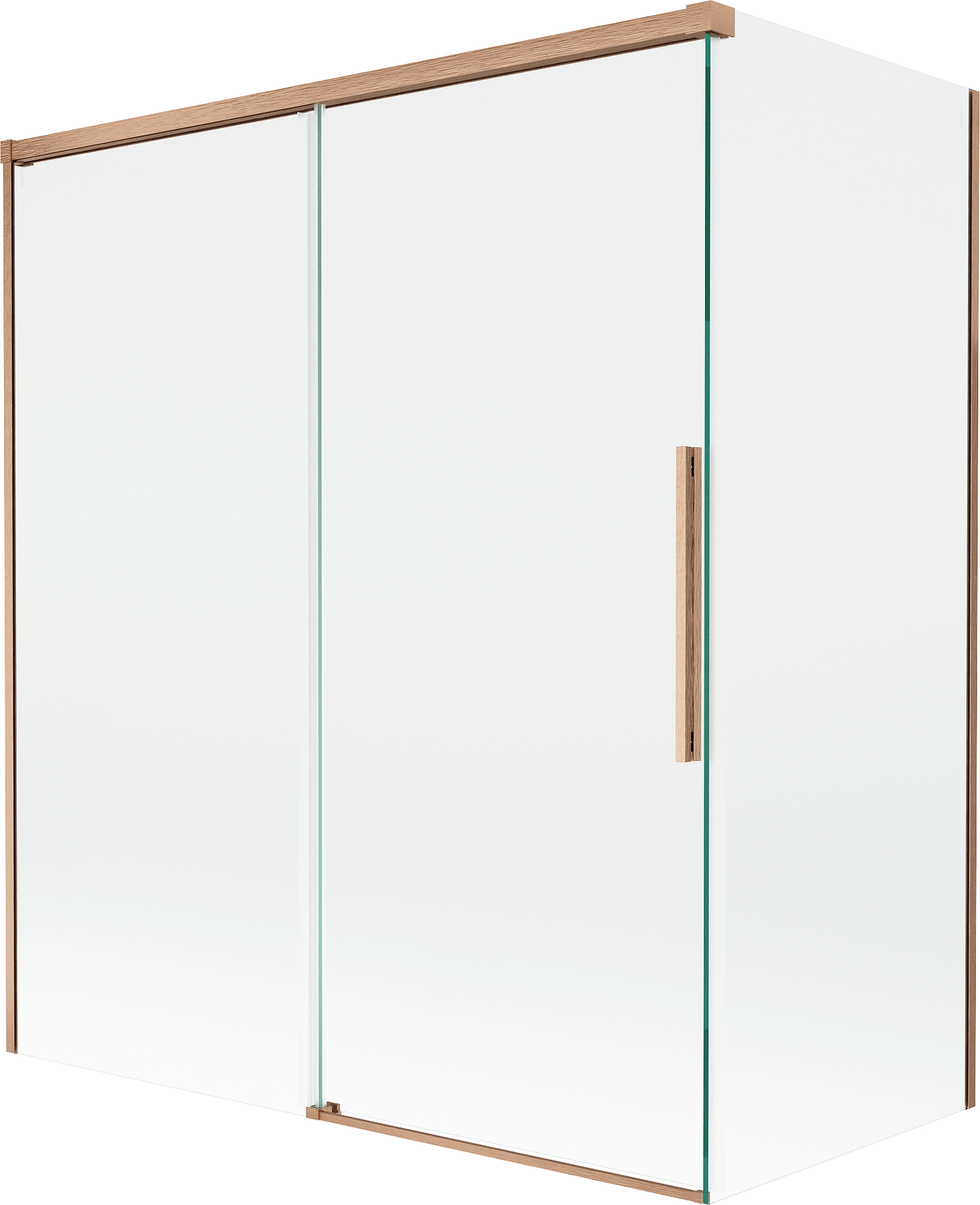 Mexen Rox badwand 2-delig verschuifbaar 140 + 70 x 150 cm, transparant, geborsteld koper - 8C9-140-070-65-00
