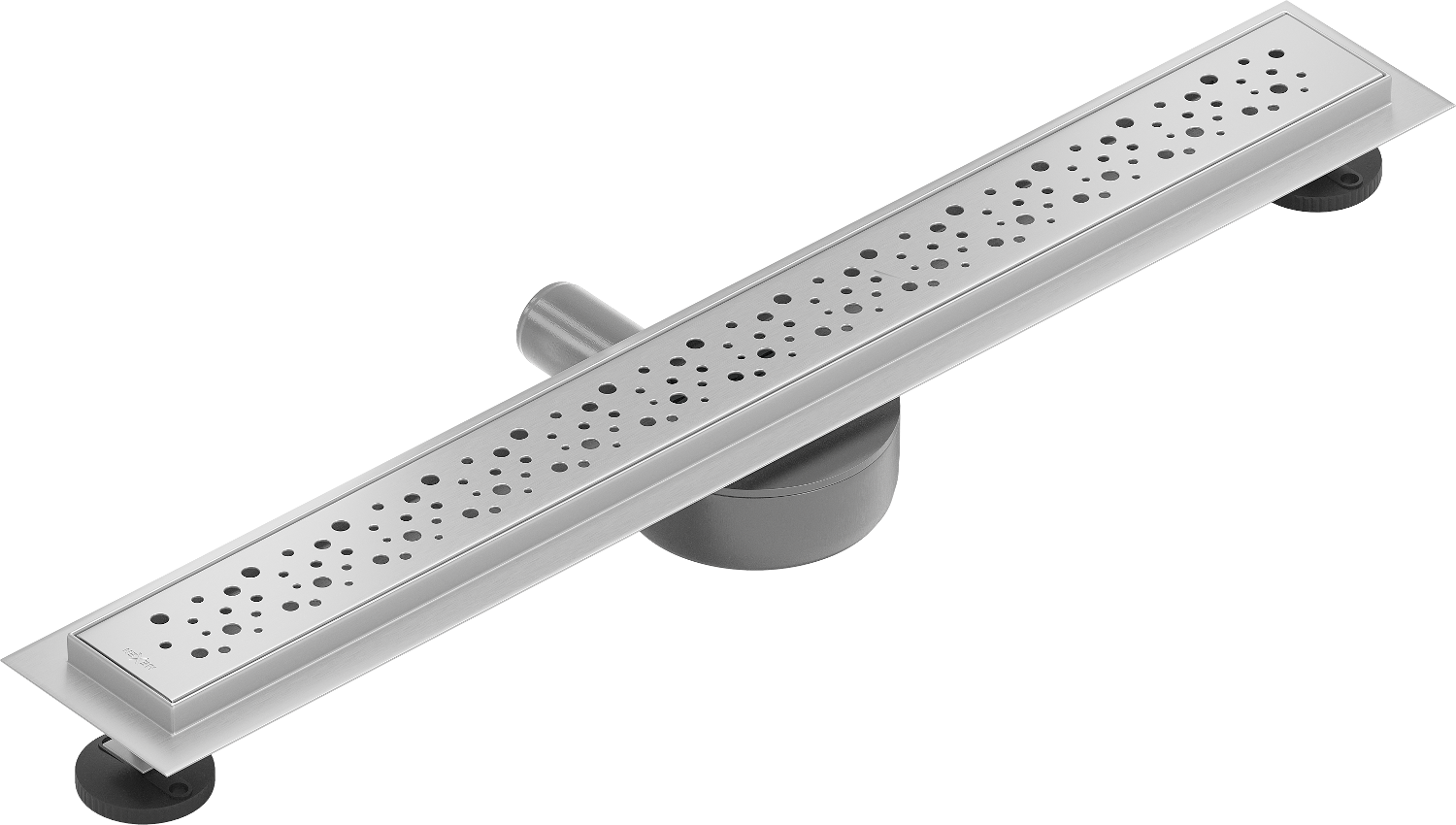 De afvoer is uitgerust met verstelbare pootjes, die het mogelijk maken om de juiste hoogte van de afvoer aan te passen en waterpas te stellen op een ongelijke ondergrond. Op deze manier is de afvoer nog beter aangepast aan de omstandigheden van de betreffende badkamer.
