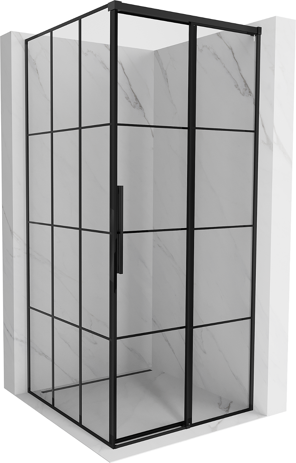 Mexen Rox douchecabine verschuifbaar rechts 100 x 100 cm, zwart raster, zwart - 8C2-100-100-70-77-P