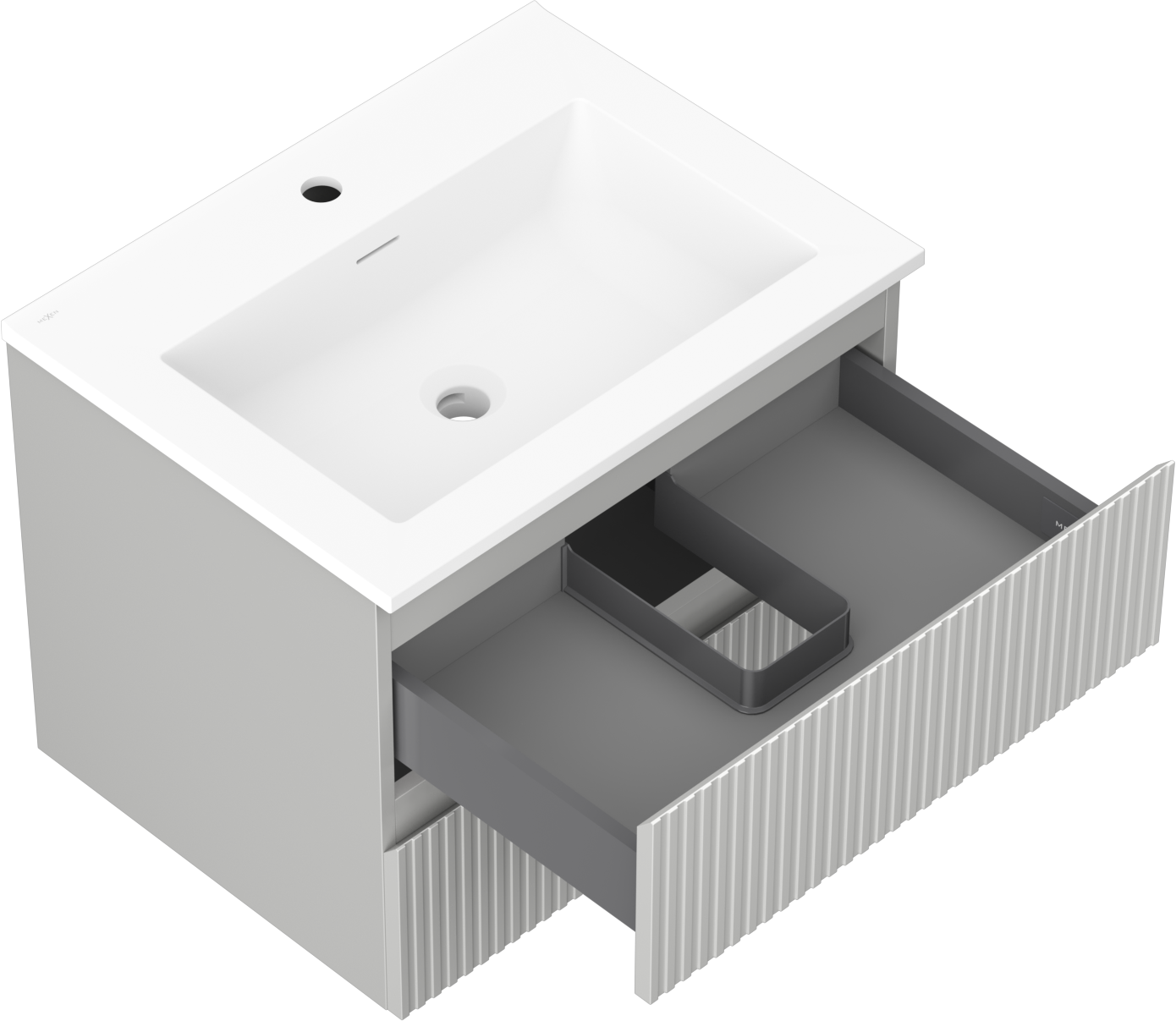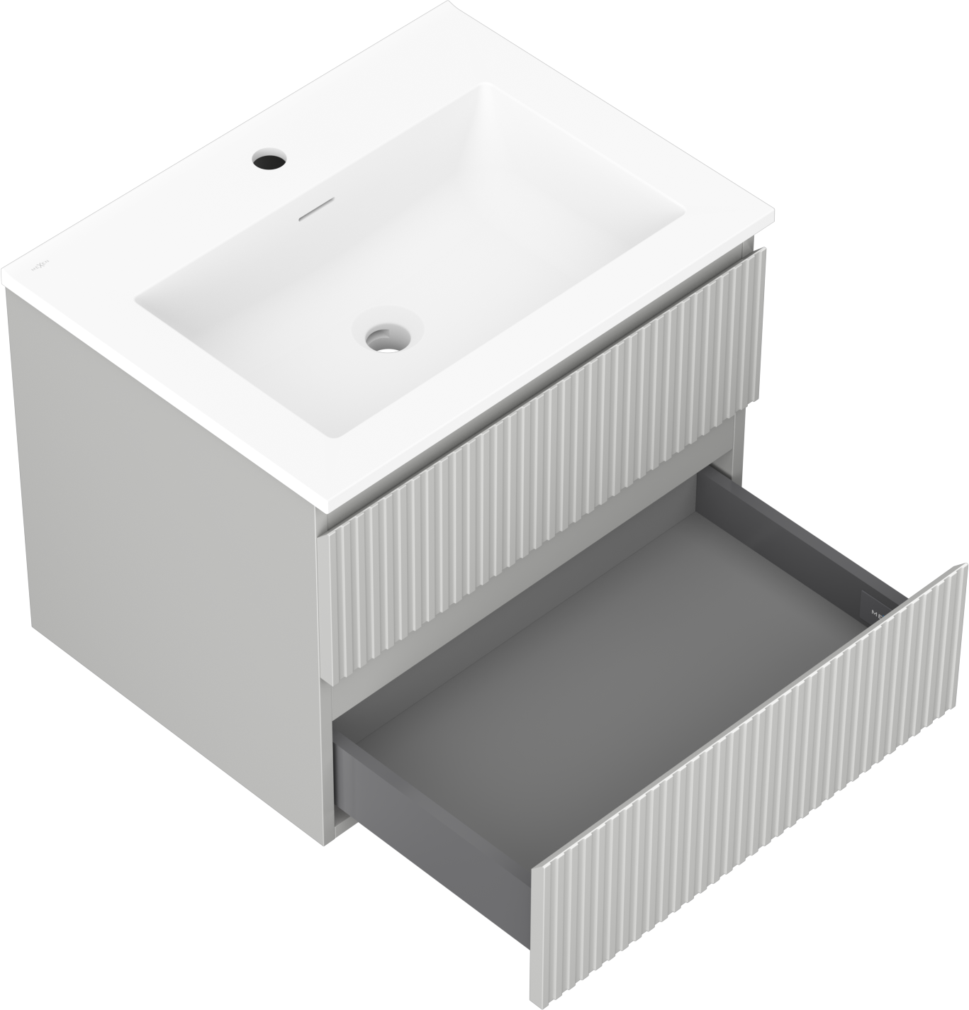 Mexen Rivel badkamerkast 60 cm met wastafel Otis, 2 laden, geribbeld, grijs mat/wit mat - 91A20-06047-2-BFF62-W18M01