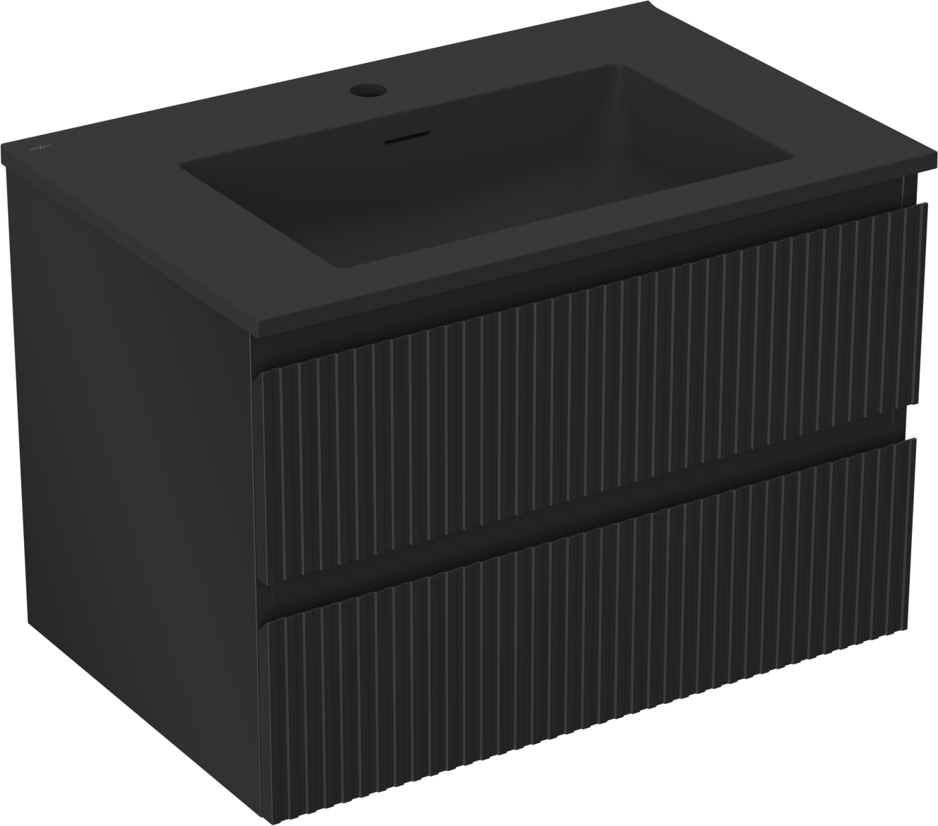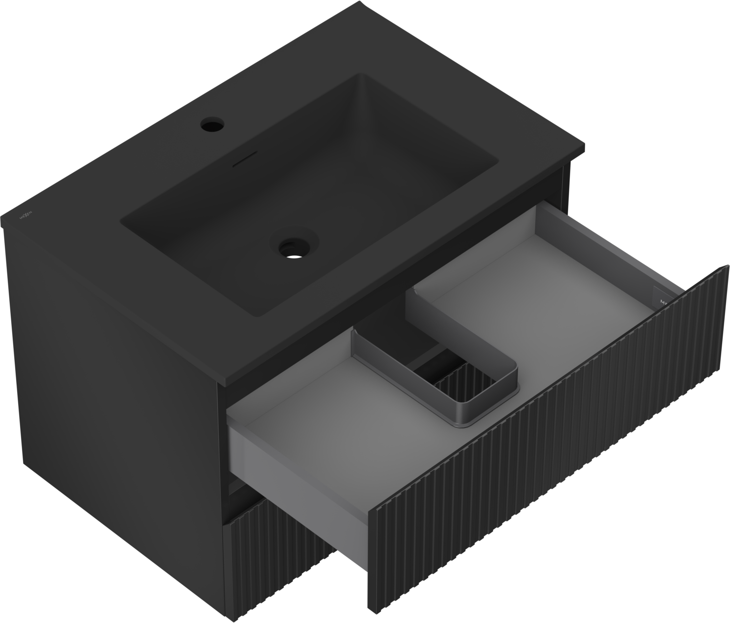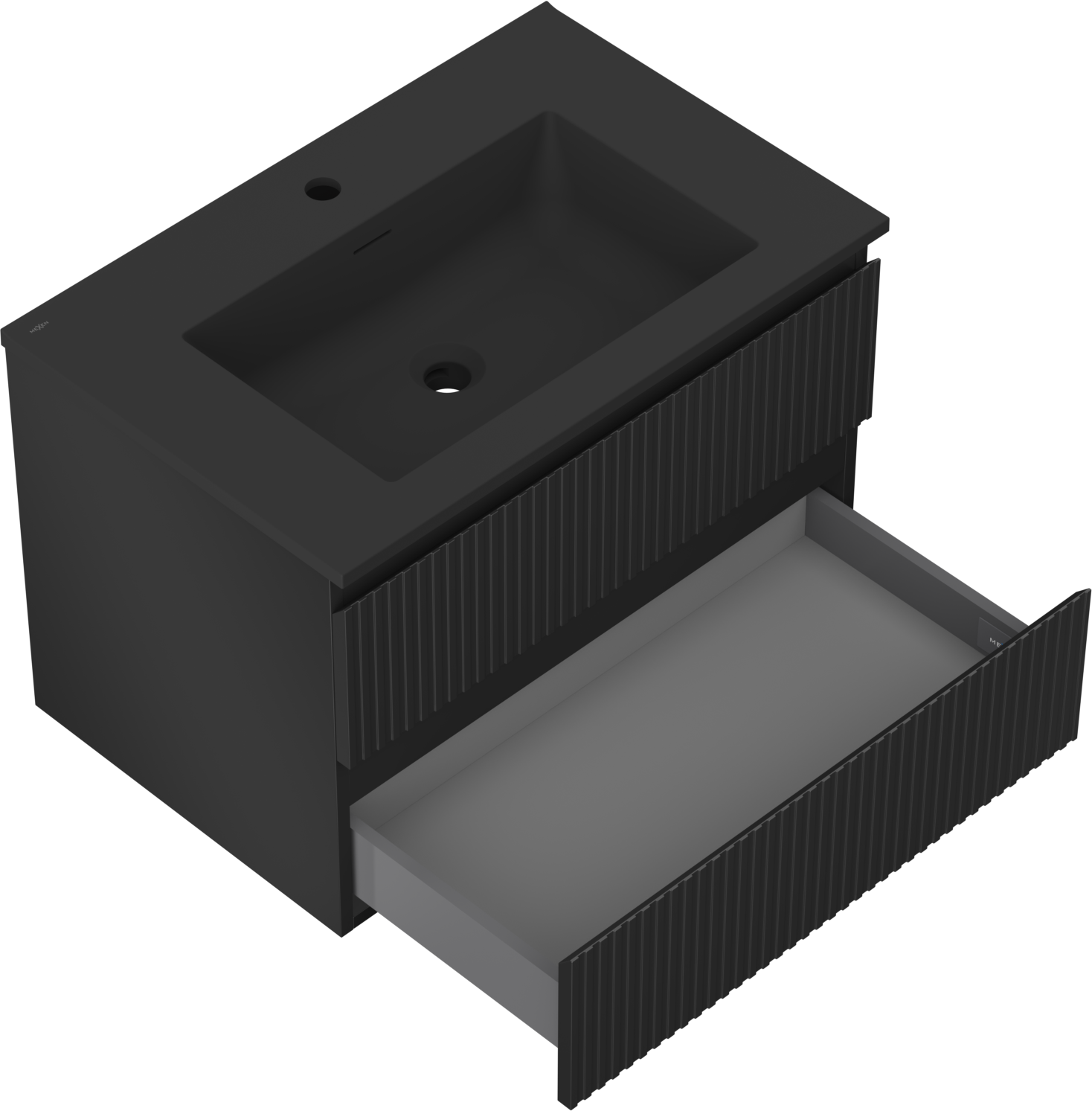 Mexen Rivel badkamerkast 70 cm met wastafel Otis, 2 laden, gegroefd, zwart mat - 91A20-07047-2-BFF71-W18M71