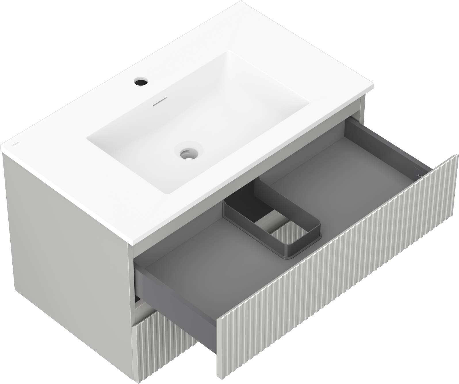 Mexen Rivel badkamerkast 80 cm met Otis-wastafel, 2 lades, gegroefd, grijs mat/wit mat - 91A20-08047-2-BFF62-W18M01