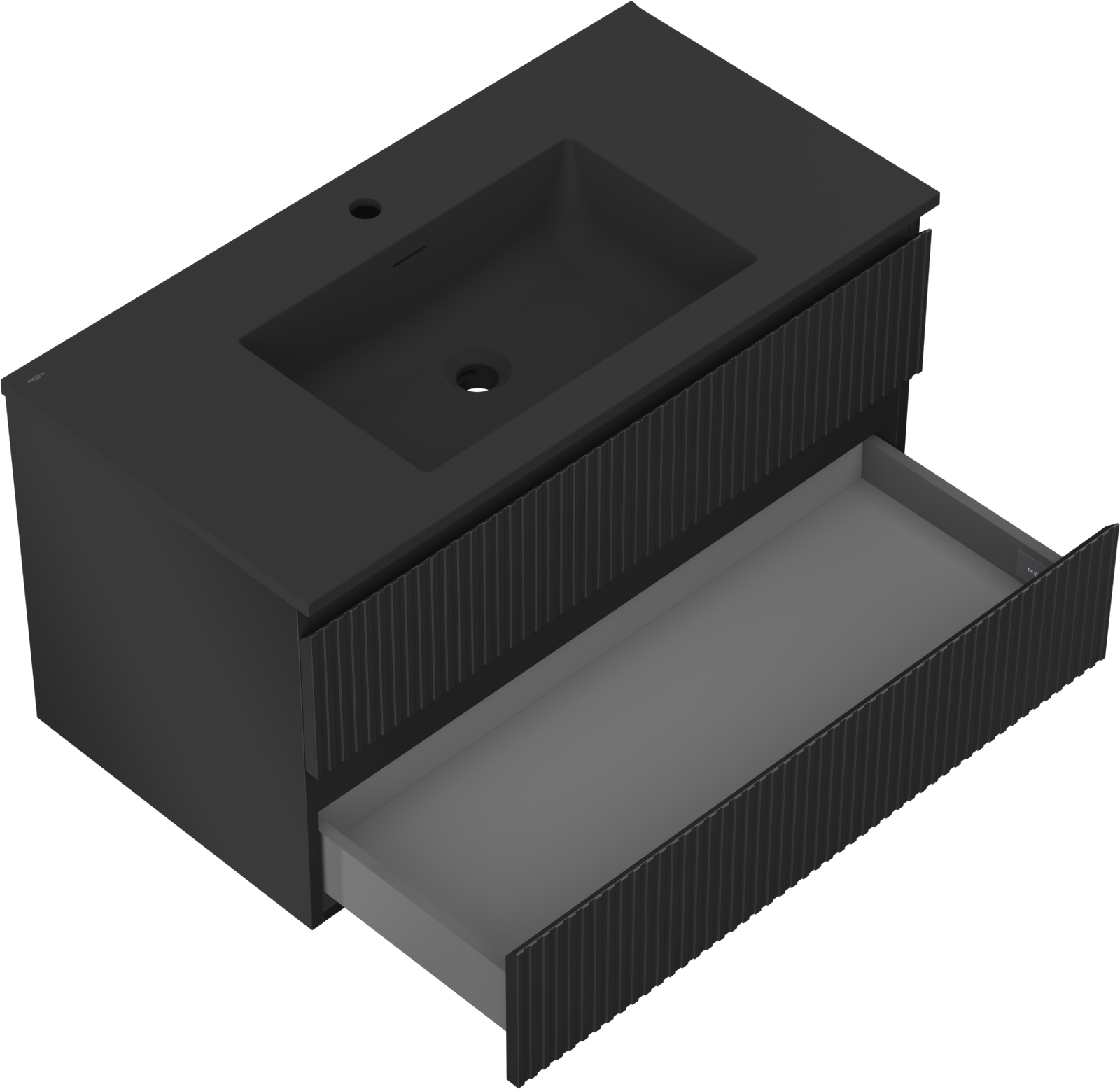 Mexen Rivel badkamerkast 90 cm met Otis wastafel, 2 laden, gegroefd, zwart mat - 91A20-09047-2-BFF71-W18M71