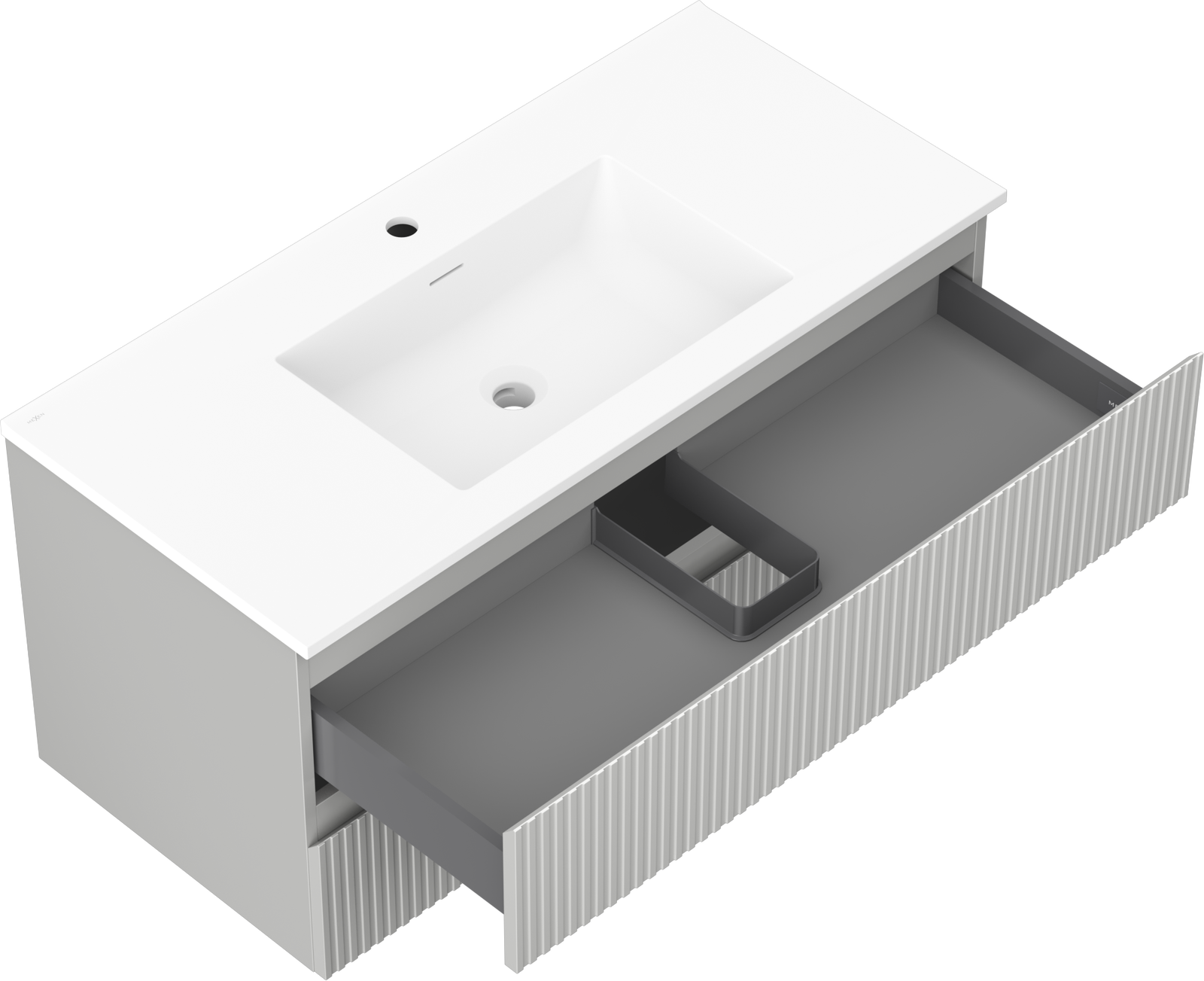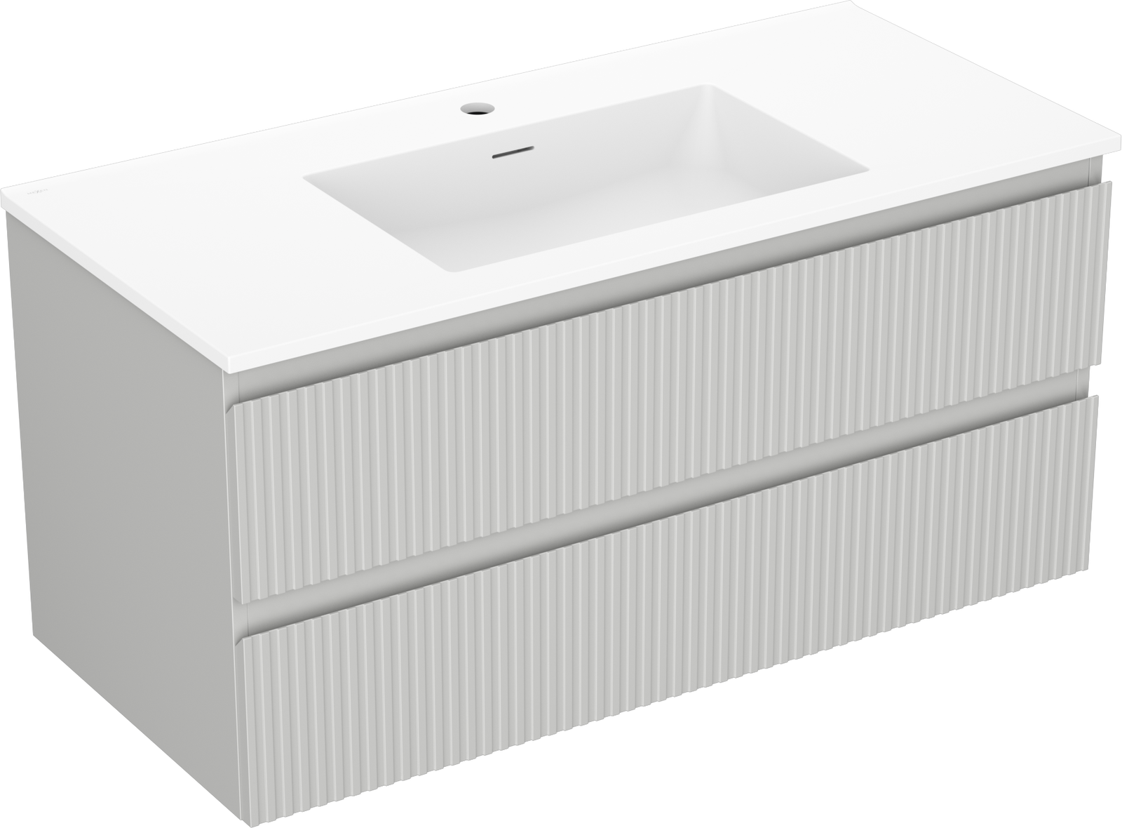 Mexen Rivel badkamerkast 100 cm met wastafel Otis, 2 lades, gegroefd, grijs mat/wit mat - 91A20-10047-2-BFF62-W18M01