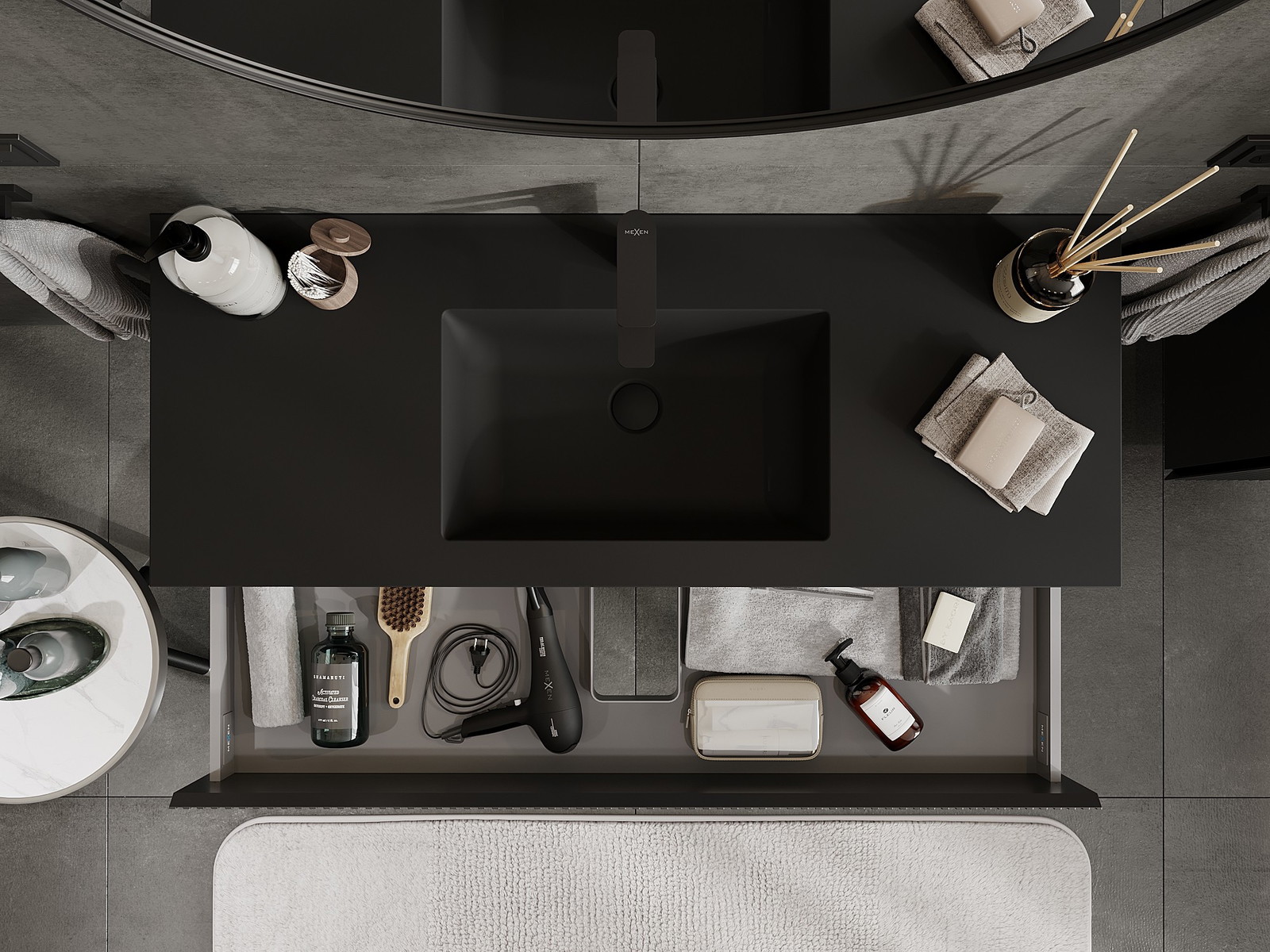 Mexen Rivel badkamerkast 120 cm met wastafel Otis, 2 lades, gegroefd, zwart mat - 91A20-12047-2-BFF71-W18M71