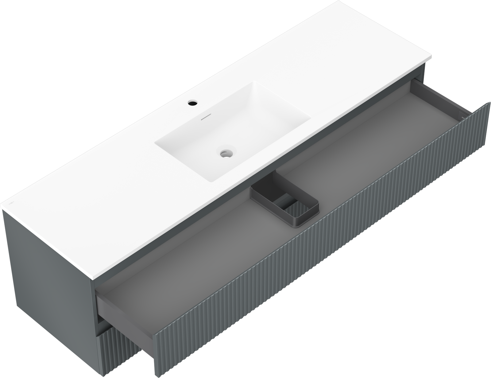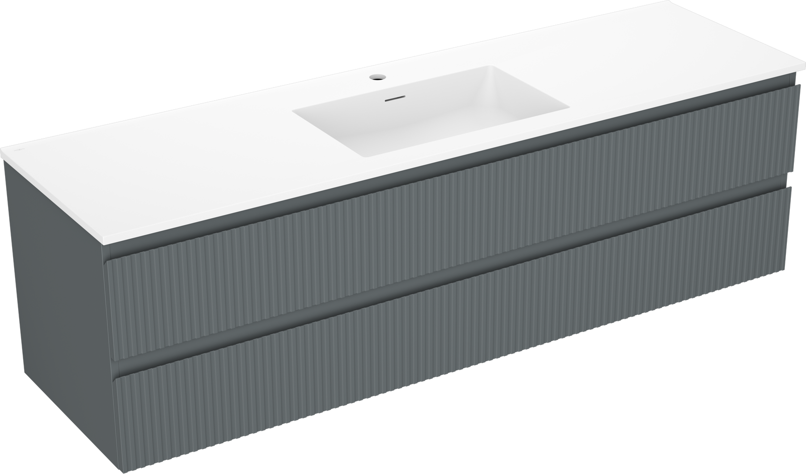 Mexen Rivel badkamerkast 160 cm met wasbak Otis, 2 laden, gegroefd, grafiet mat/wit mat - 91A20-16047-2-BFF66-W18M