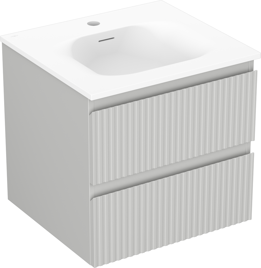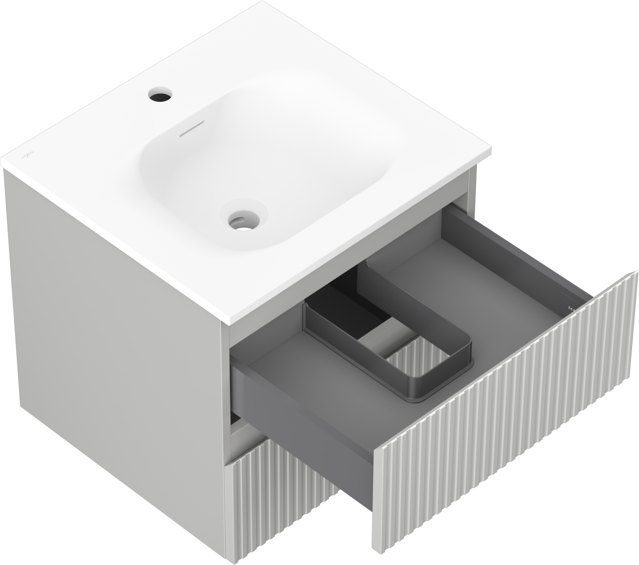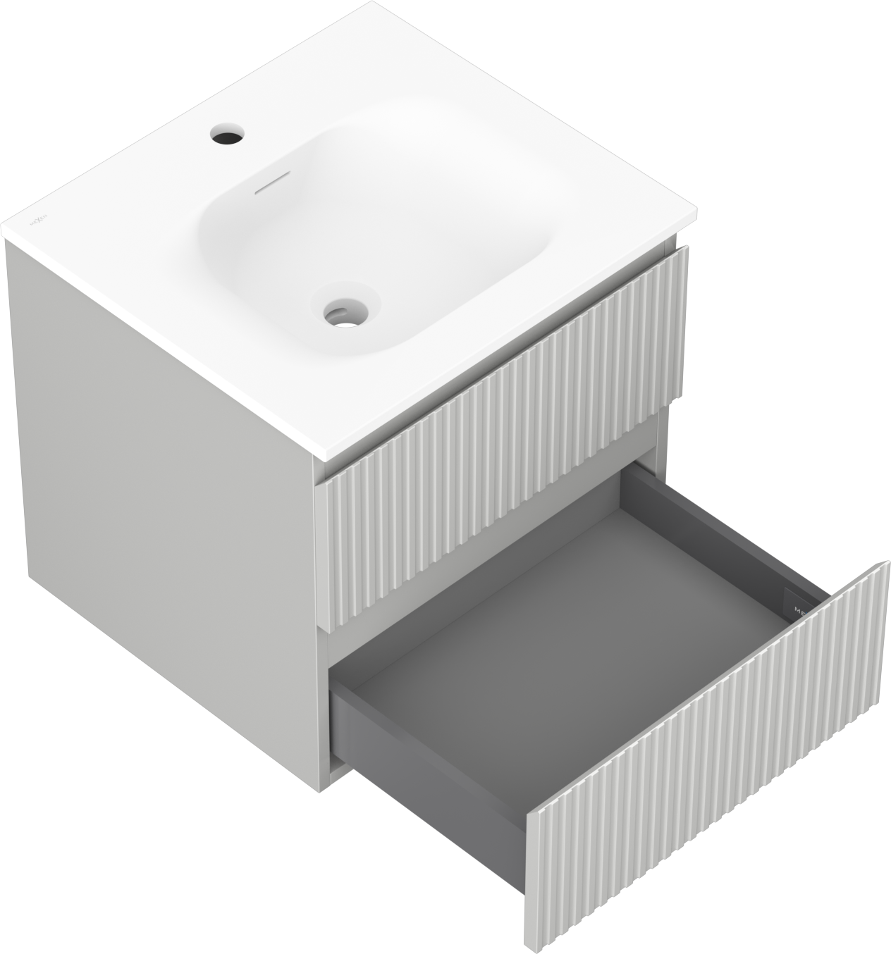 Mexen Rivel badkamerkast 50 cm met wastafel Vela, 2 laden, geribbelde , grijs mat/wit mat - 91A20-05047-2-BFF62-W23M01