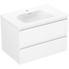 De uitsparing in de lade is zo ontworpen dat het de sifon kan bevatten, die noodzakelijk is in wastafelinstallaties. Hierdoor kan het meubel volledig functioneel worden gemonteerd, zonder dat er ruimte in de lade opgeofferd hoeft te worden voor installatiedoeleinden.