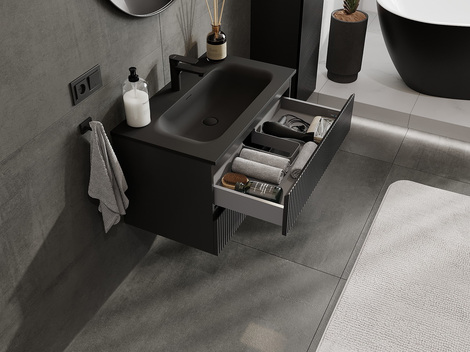 Onze modulaire badkamermeubels kunnen in verschillende kleurconfiguraties met elkaar worden gecombineerd, wat volledige personalisatie mogelijk maakt. Zowel het uiterlijk als de functies van de afzonderlijke elementen kunnen worden gekozen, waardoor de meubels kunnen worden aangepast aan persoonlijke stijlvoorkeuren en gebruikswensen.