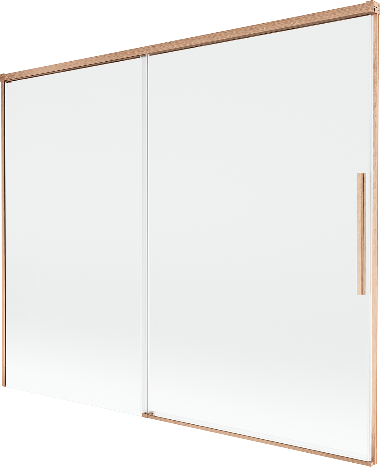 Mexen Rox badscherm 2-delig schuifbaar 190 x 150 cm, transparant, geborsteld koper - 8C9-190-001-65-00