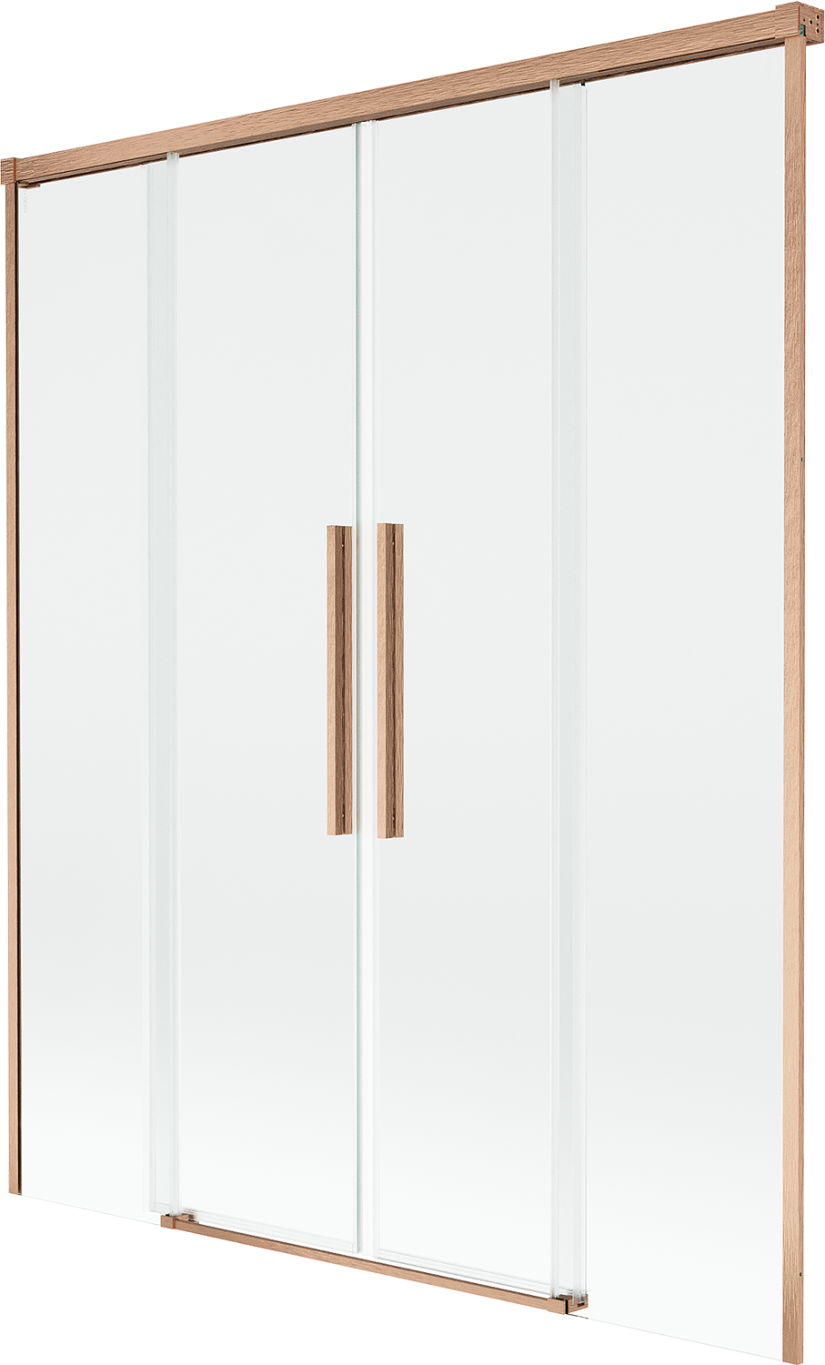 Mexen Rox badwand 2-delig schuifbaar 140 x 150 cm, transparant, geborsteld koper - 8C9-140-002-65-00