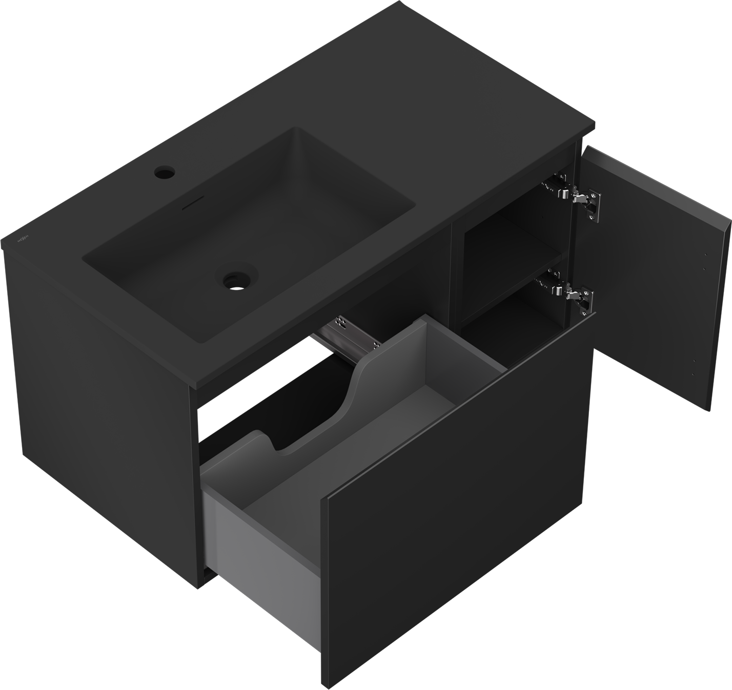 Mexen Orio badkamerkast 90 cm met wastafel Otis links, 1S, 1D, zwart mat - 91A13-09047-3-BBFF71-W18L71