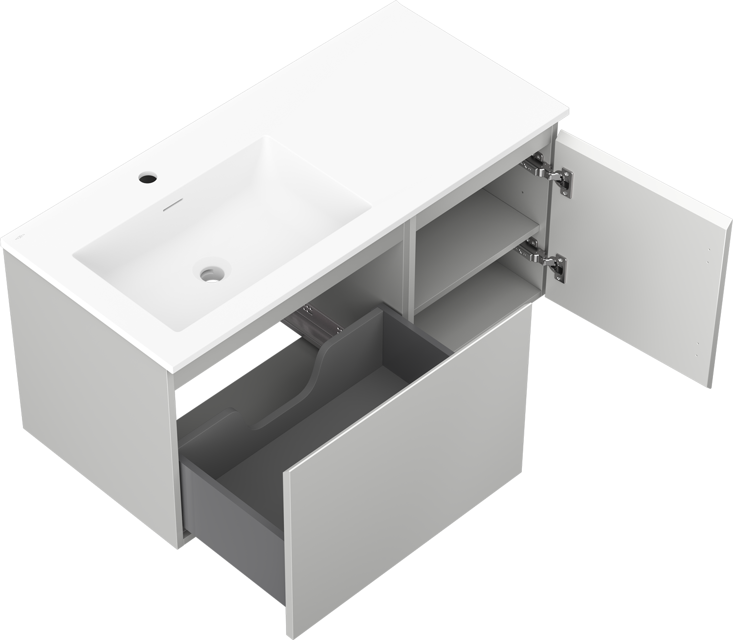 Mexen Orio badmeubelkast 100 cm met Otis wastafel links, 1S, 1D, grijs mat/wit mat - 91A13-10047-3-BBFF62-W18L01