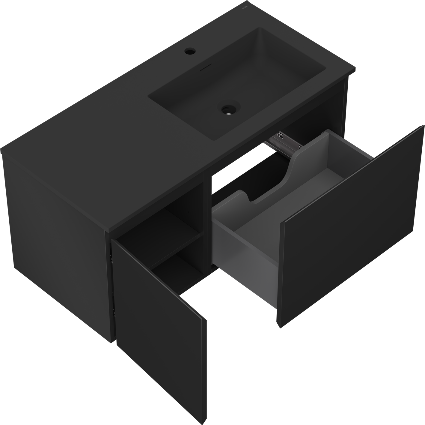 Mexen Orio badkamerkast 100 cm met wastafel Otis rechts, 1S, 1D, zwart mat - 91A13-10047-3-BBFF71-W18P71