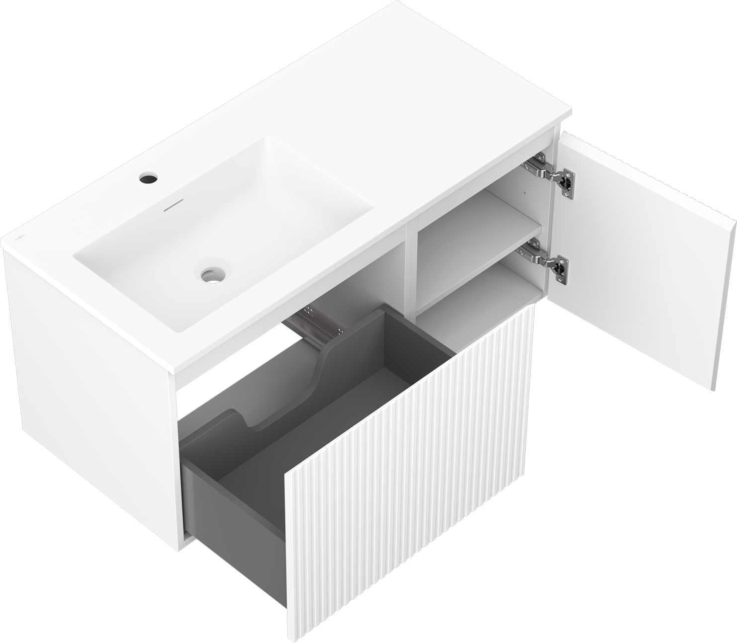 Mexen Rivel badkamerkast 100 cm met Otis wastafel links, 1S, 1D, gefreesd, wit mat - 91A23-10047-3-BBFF01-W18L01