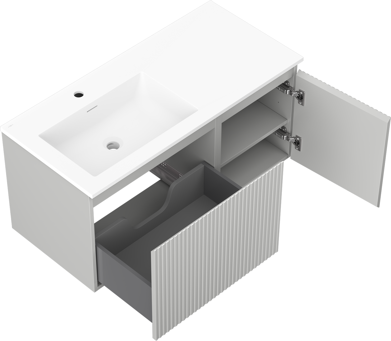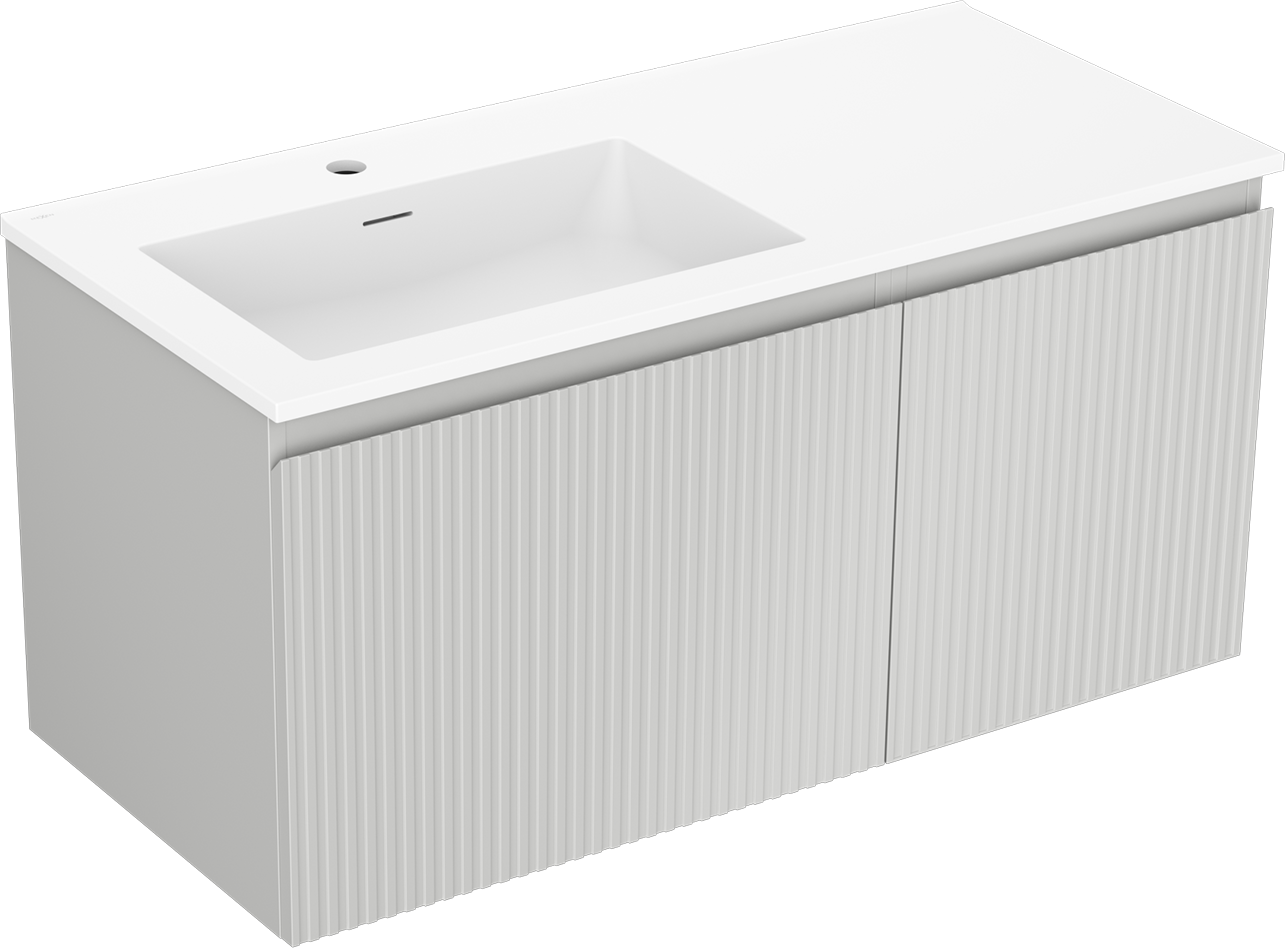 Mexen Rivel badkamerkast 100 cm met Otis wastafel links, 1S, 1D, gegroefd, grijs mat/wit mat - 91A23-10047-3-BBFF62-W18L01
