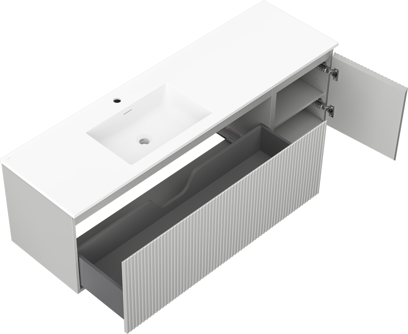 Mexen Rivel badkamerkast 160 cm met Otis wastafel links, 1S, 1D, geribbeld, grijs mat/wit mat - 91A23-16047-3-BBFF62-W18L01