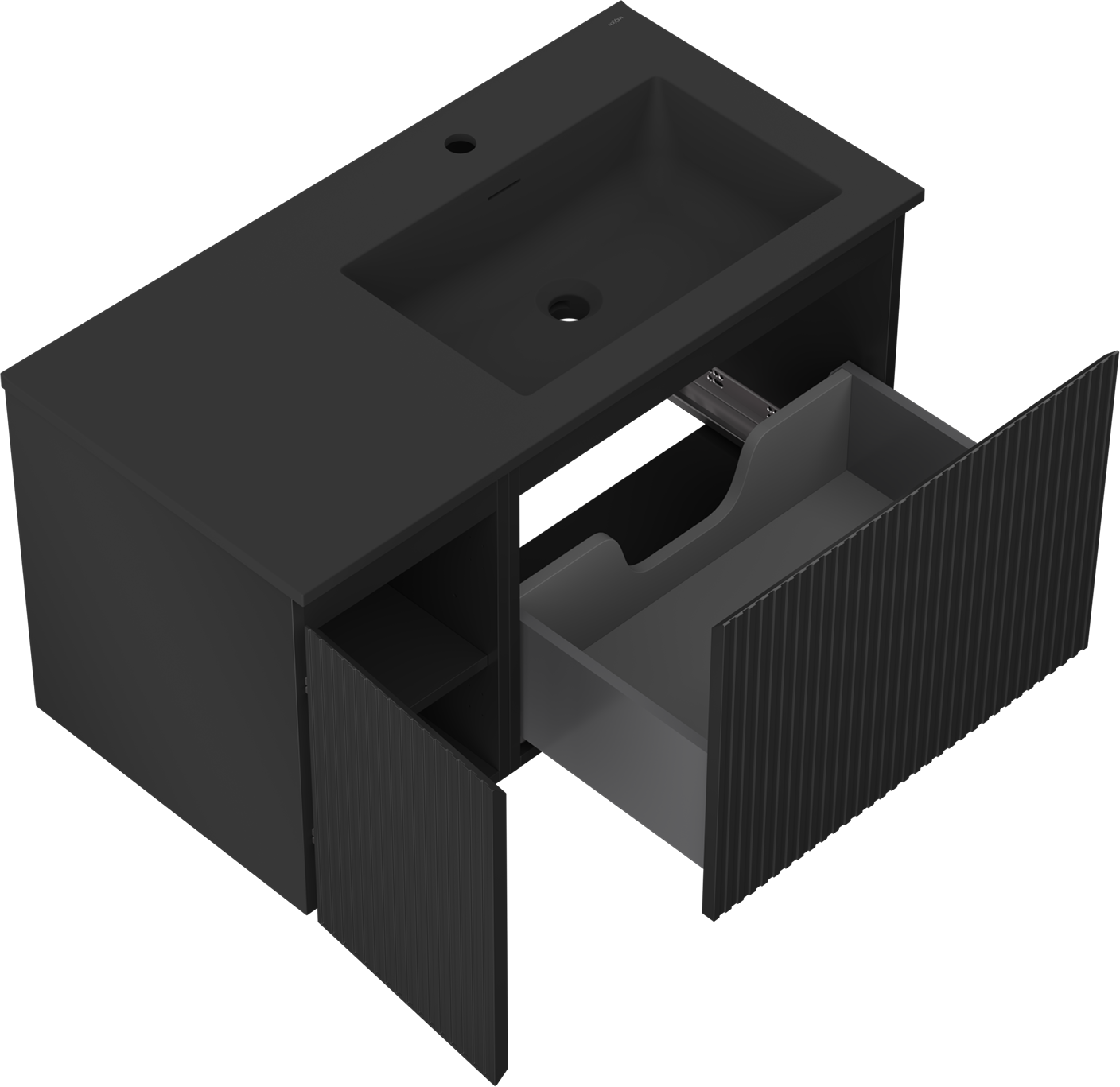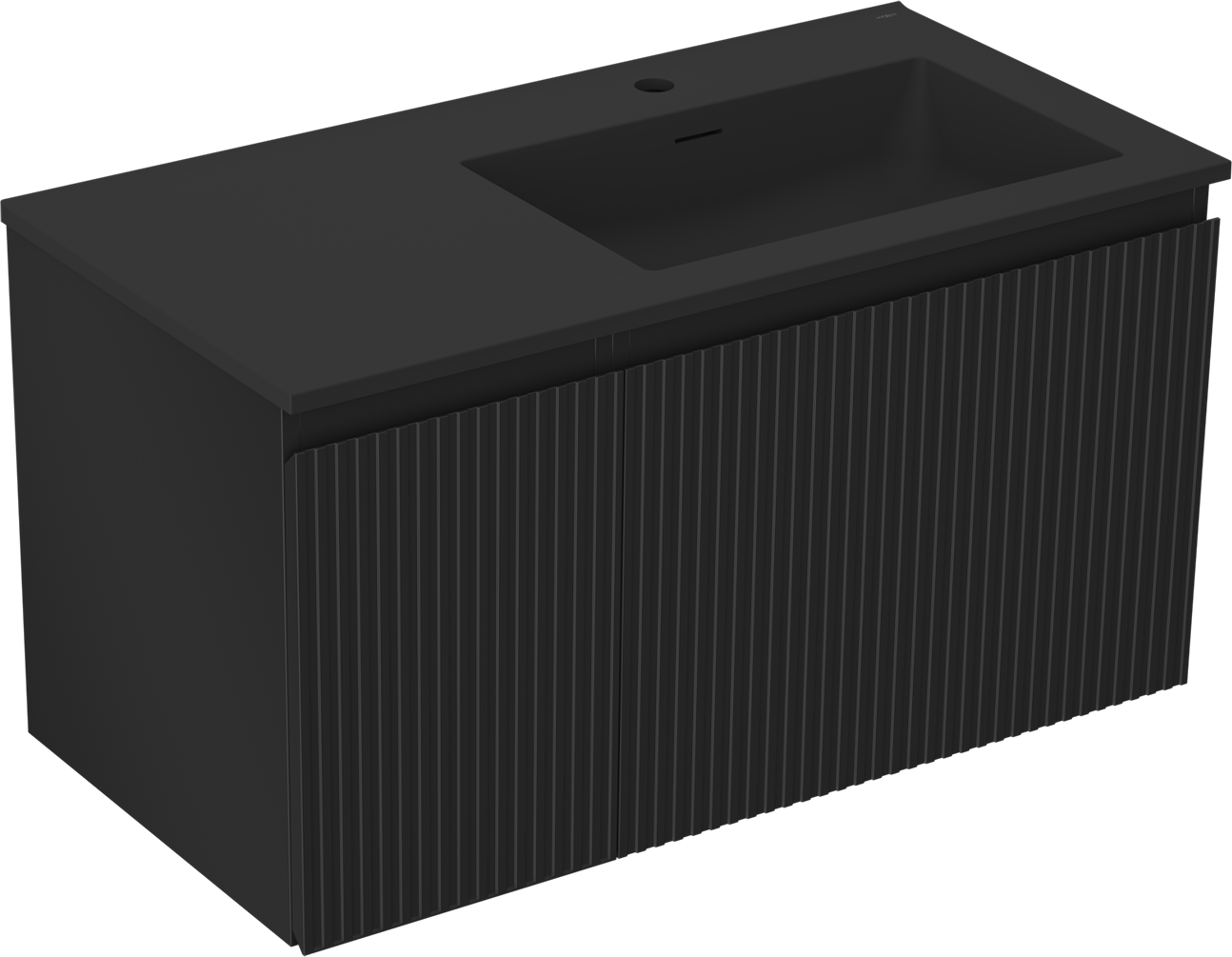 Mexen Rivel badkamerkast 90 cm met wastafel Otis rechts, 1S, 1D, geribbeld, zwart mat - 91A23-09047-3-BBFF71-W18P71