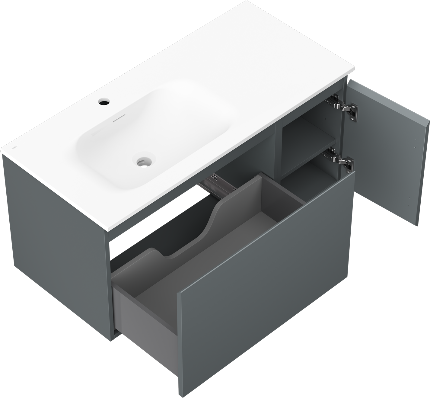 Mexen Orio badkamerkast 100 cm met wastafel Vela links, 1S, 1D, grafiet mat/wit mat - 91A13-10047-3-BBFF66-W23L01