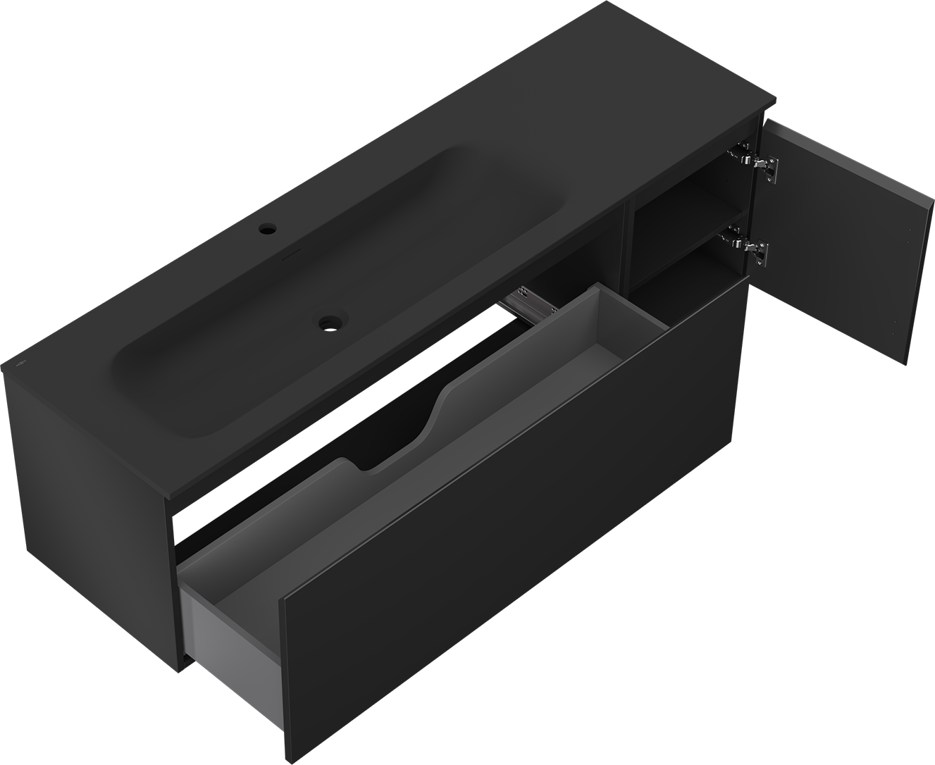 Mexen Orio badkamerkast 160 cm met wastafel Vela links, 1S, 1D, zwart mat - 91A13-16047-3-BBFF71-W23L71