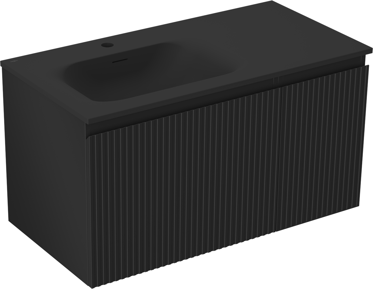 Mexen Rivel badkamerkast 90 cm met wastafel Vela links, 1S, 1D, geribbeld, zwart mat - 91A23-09047-3-BBFF71-W23L71
