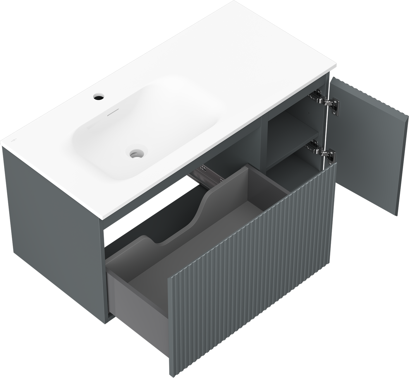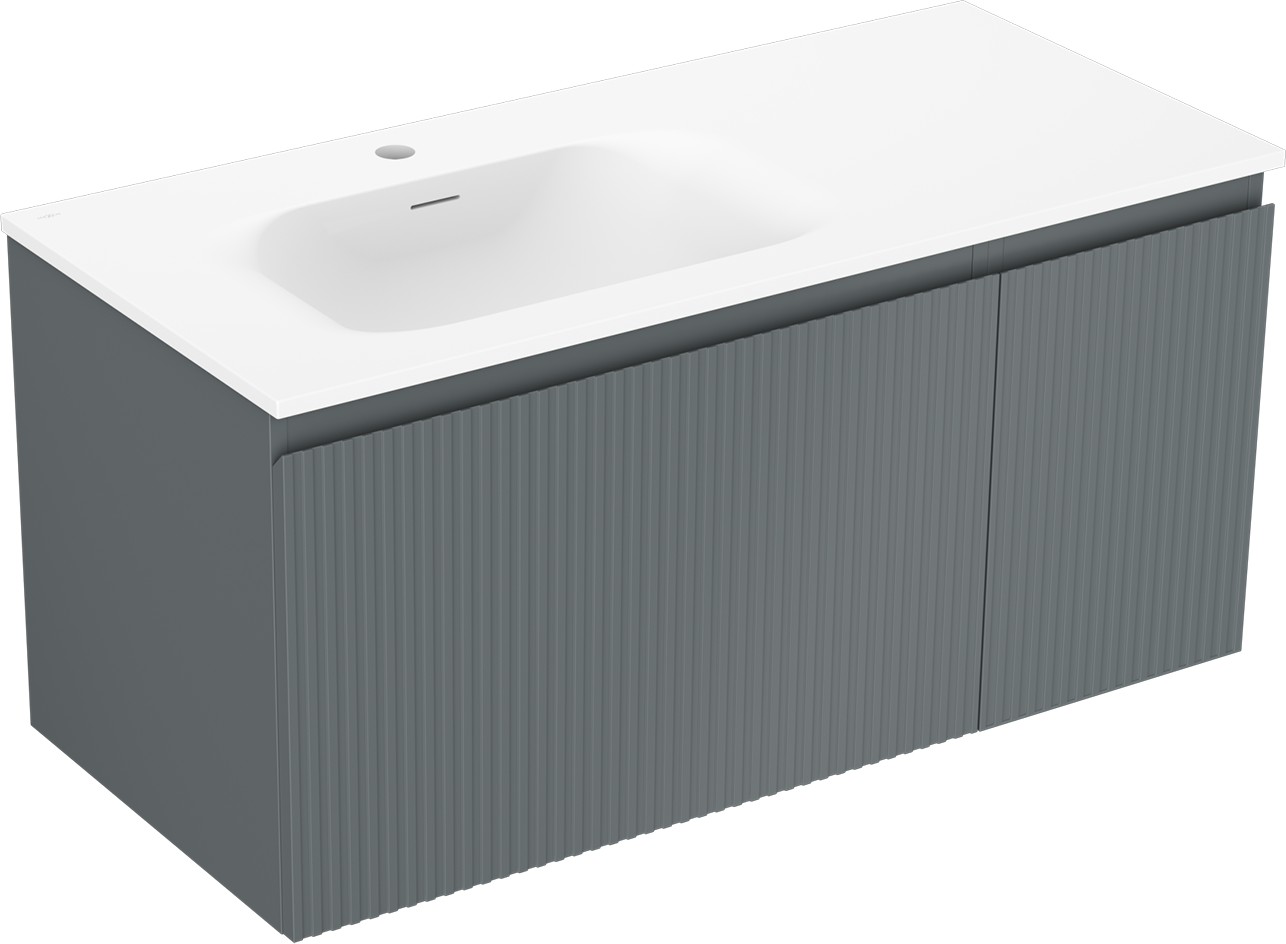 Mexen Rivel badkamerkast 100 cm met wastafel Vela links, 1S, 1D, gegroefd, grafiet mat/wit mat - 91A23-10047-3-BBFF66-W23L01