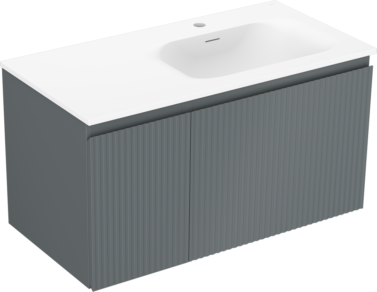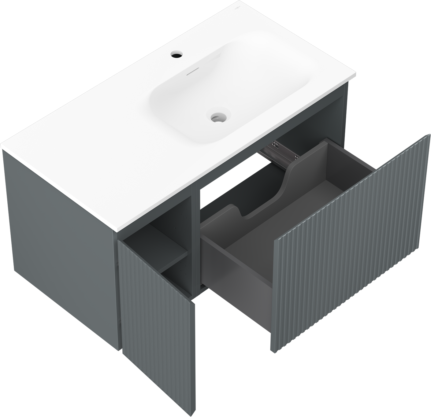Mexen Rivel badkamerkast 90 cm met wastafel Vela rechts, 1S, 1D, gegroefd, grafiet mat/wit mat - 91A23-09047-3-BBFF66-W23P01