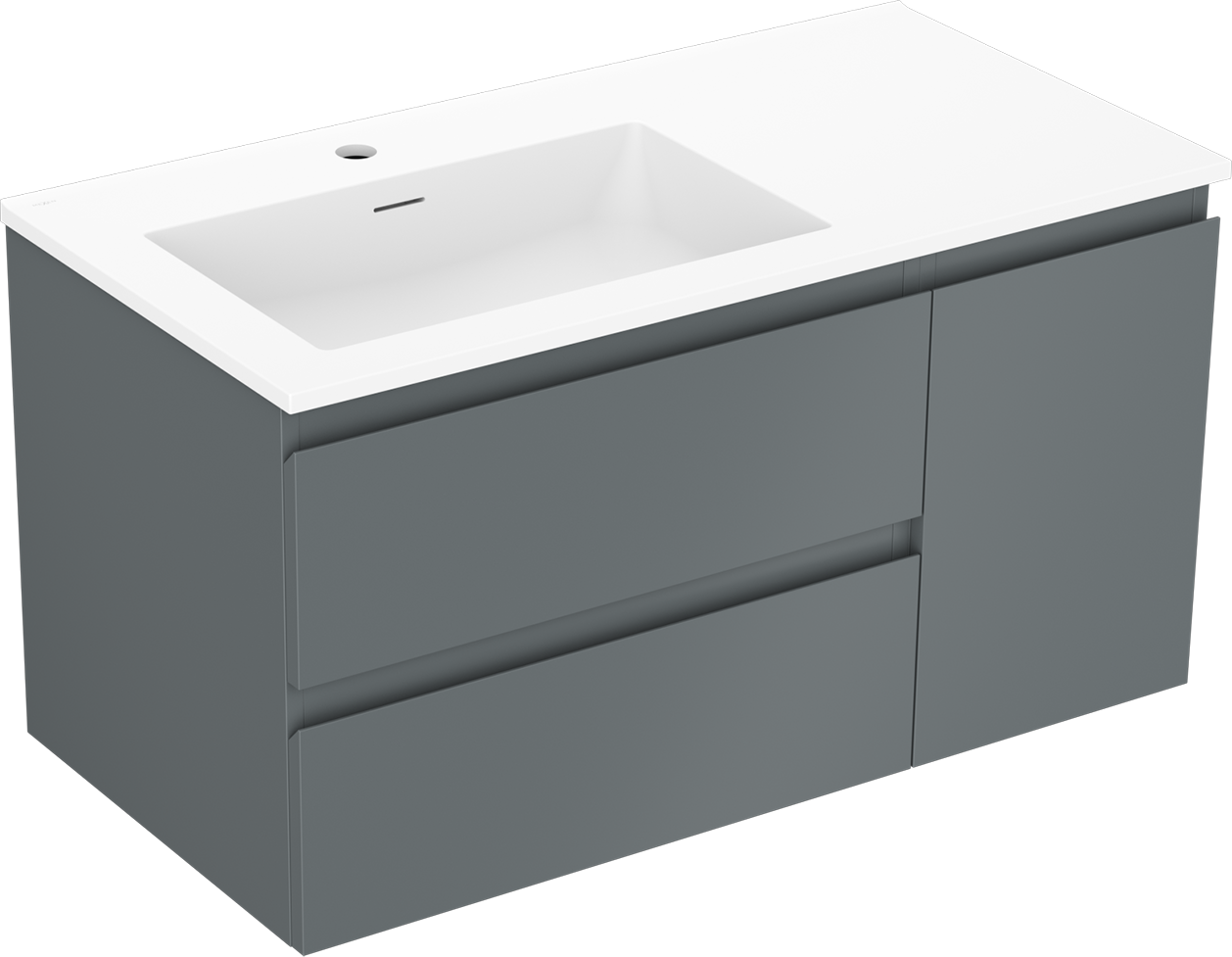Mexen Orio badkamerkast 90 cm met linkerwastafel Otis, 2S, 1D, grafiet mat/wit mat - 91A13-09047-3-BBFFF66-W18L01
