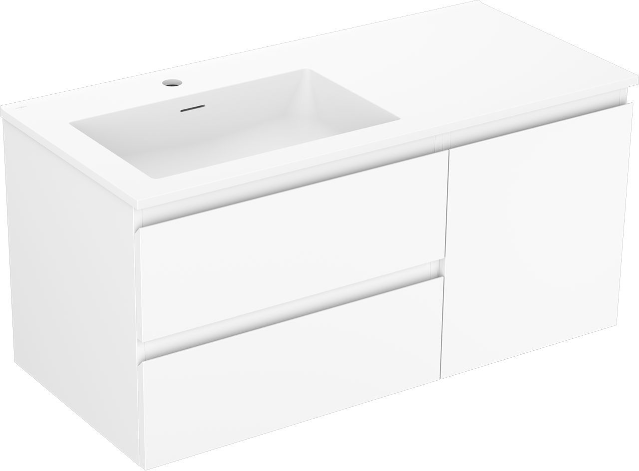 Mexen Orio badkamerkast 100 cm met Otis wastafel links, 2S, 1D, mat wit - 91A13-10047-3-BBFFF01-W18L01