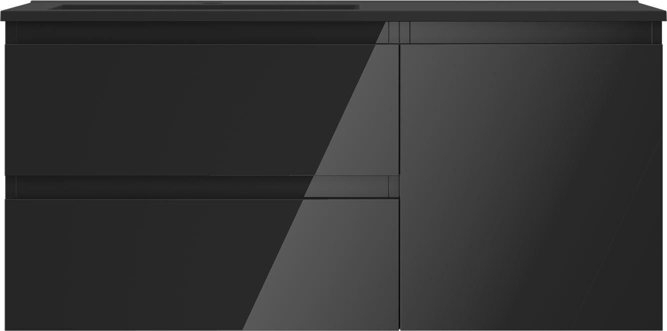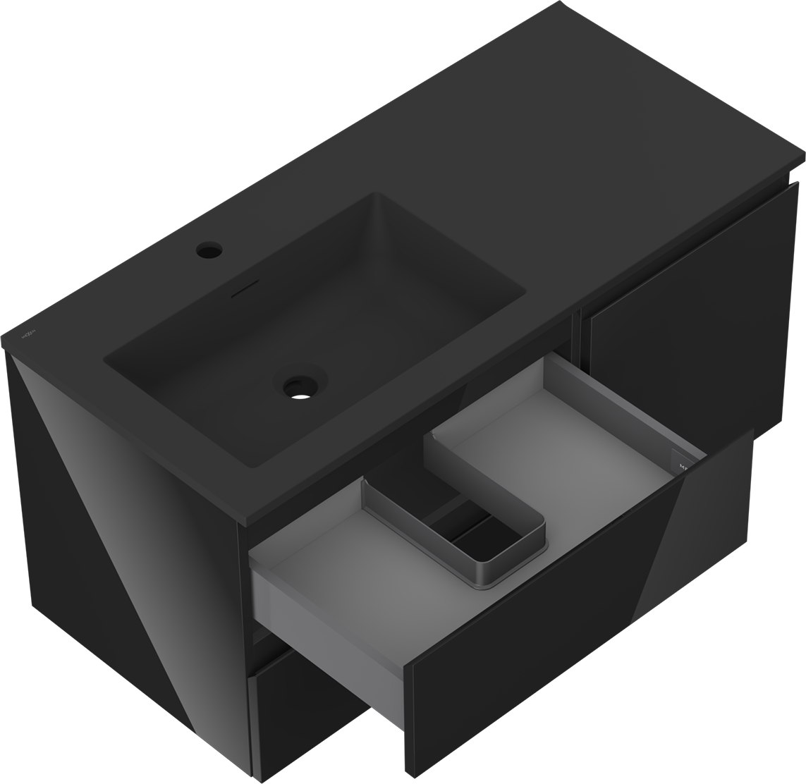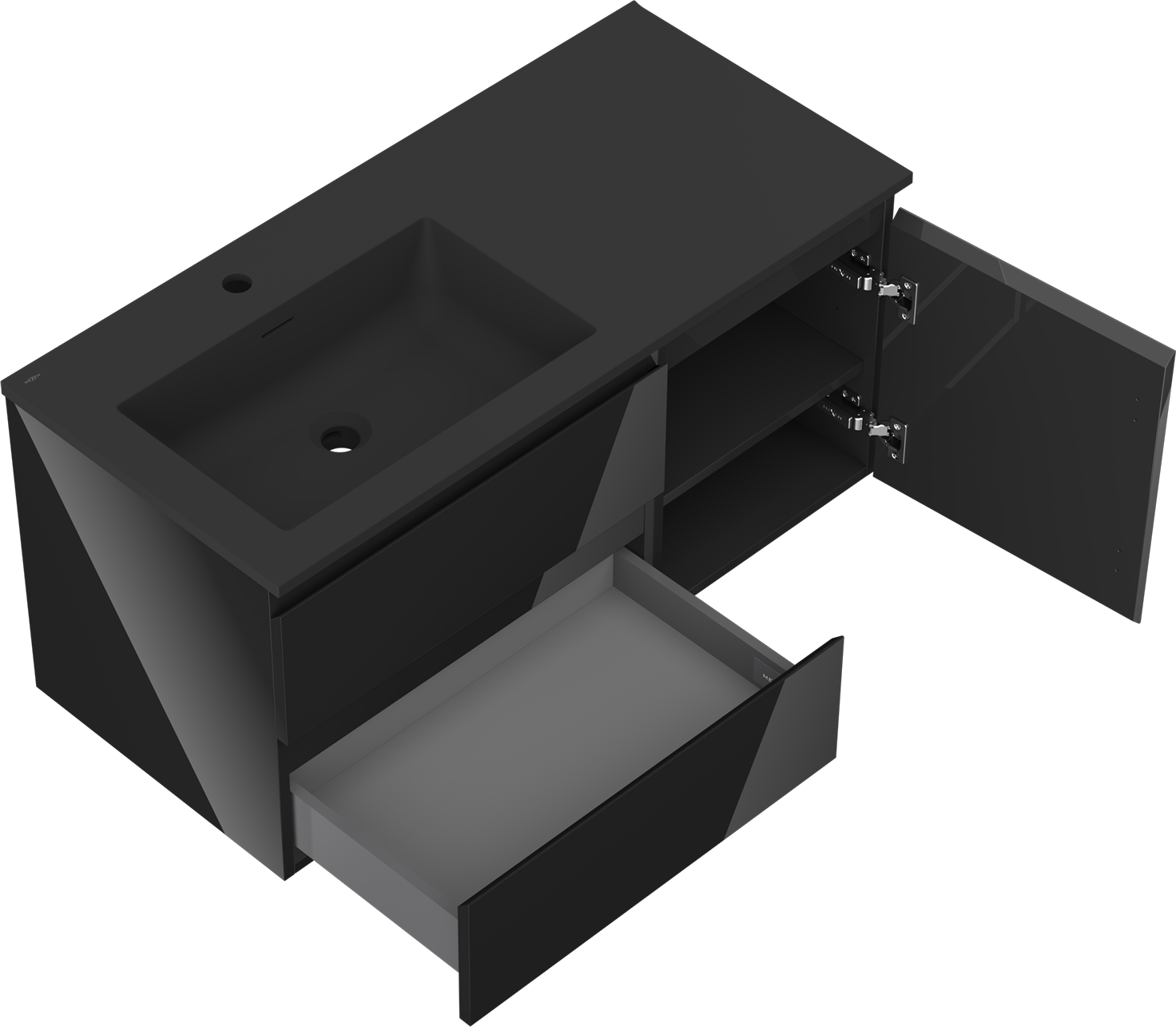 Mexen Orio badkamerkast 100 cm met Otis wastafel links, 2S, 1D, zwart glans/zwart mat - 91A13-10047-3-BBFFF70-W18L71