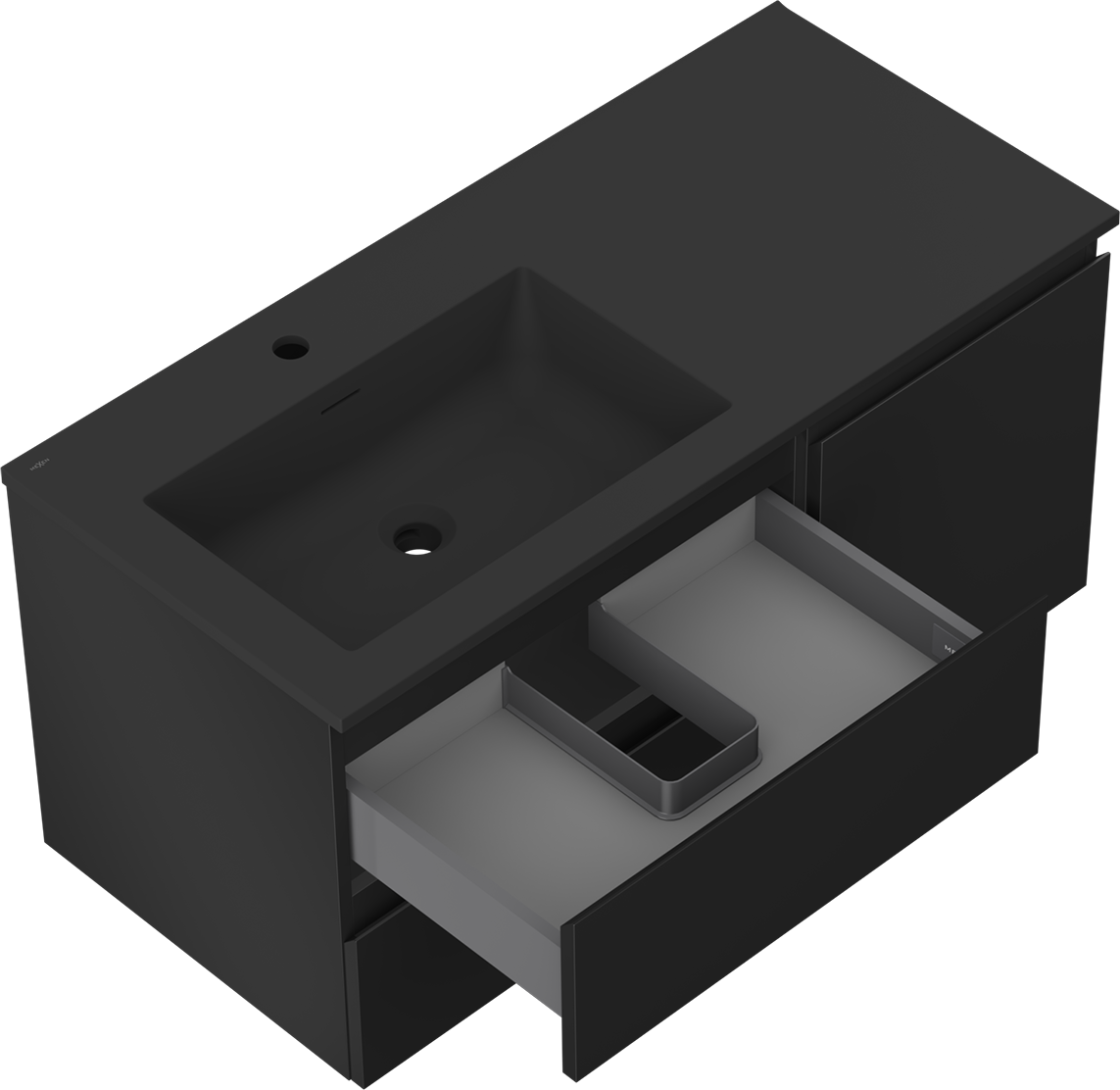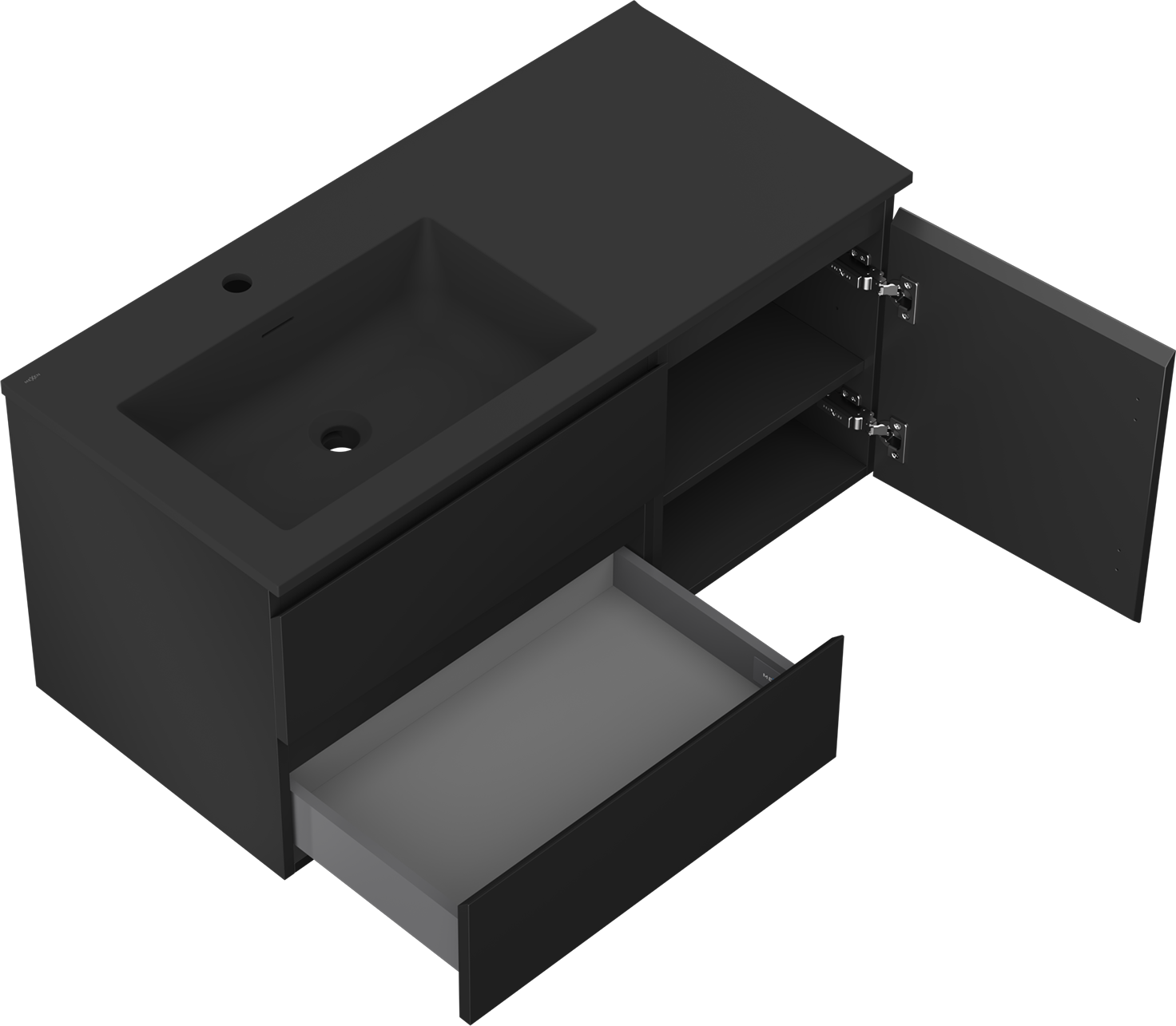 Mexen Orio badkamerkast 100 cm met wastafel Otis links, 2S, 1D, zwart mat - 91A13-10047-3-BBFFF71-W18L71