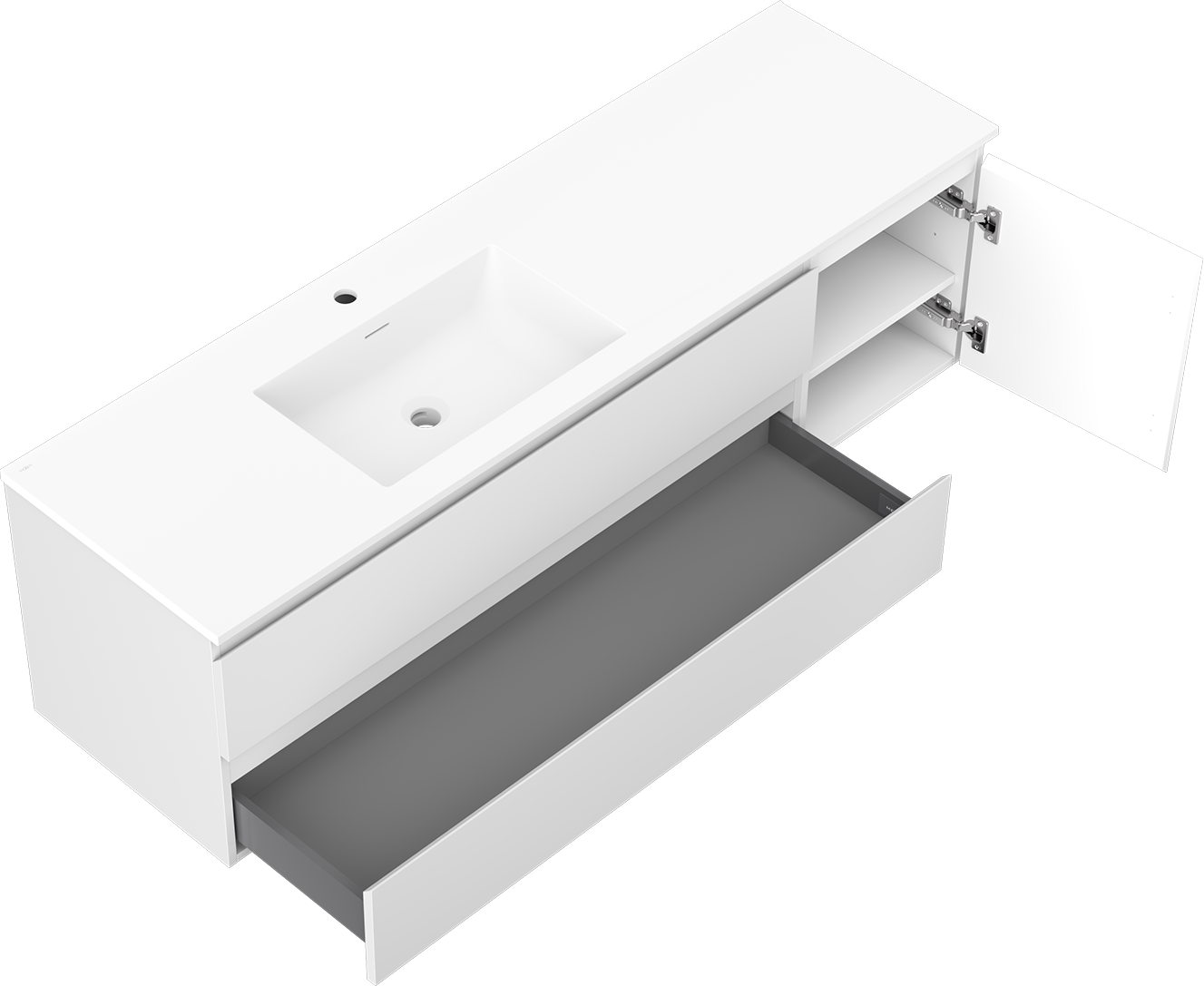 Mexen Orio badkamerkast 160 cm met Otis wastafel links, 2L, 1D, wit mat - 91A13-16047-3-BBFFF01-W18L01