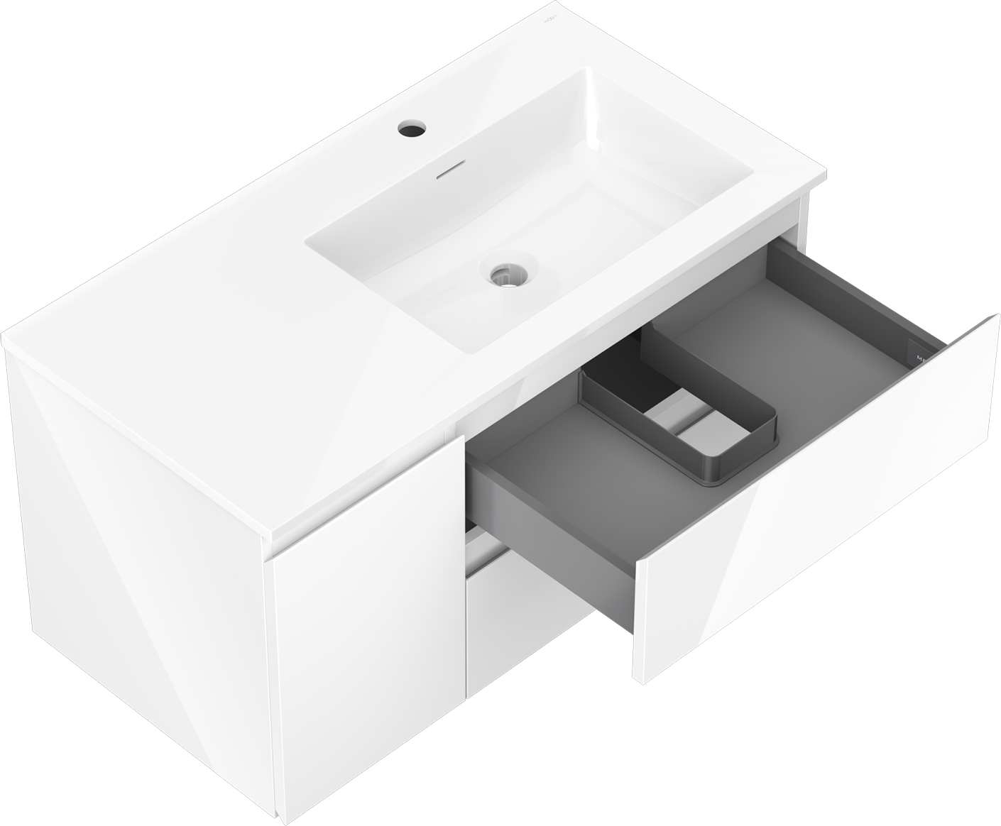 Mexen Orio badkamerkast 90 cm met wastafel Otis rechts, 2S, 1D, wit glans - 91A13-09047-3-BBFFF00-W18P00