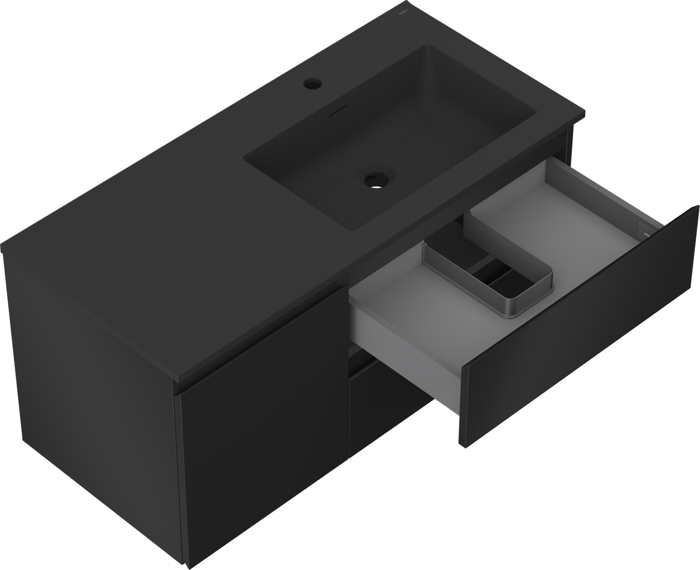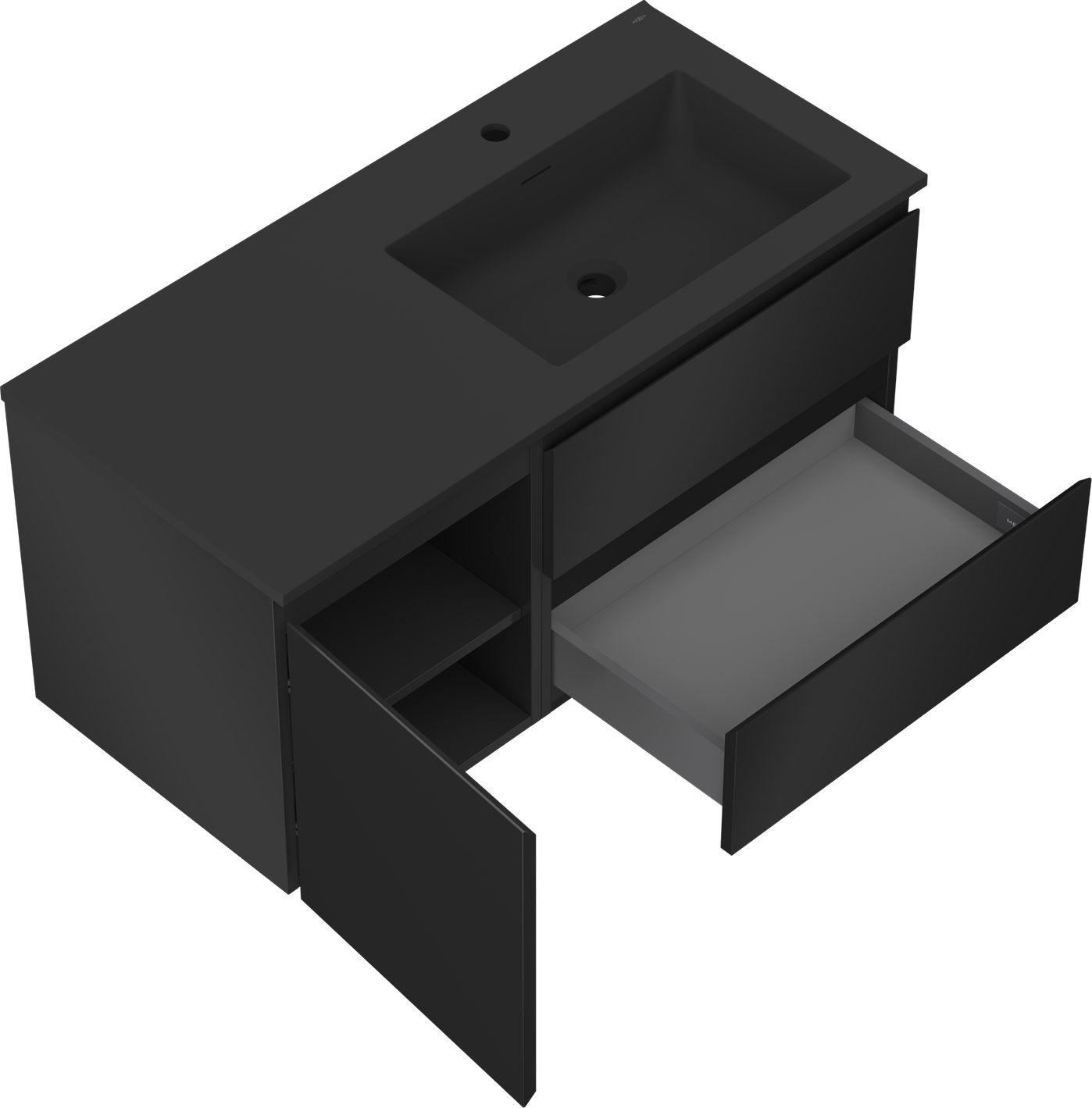 Mexen Orio badkamerkast 100 cm met wastafel Otis rechts, 2 laden, 1 deur, zwart mat - 91A13-10047-3-BBFFF71-W18P71