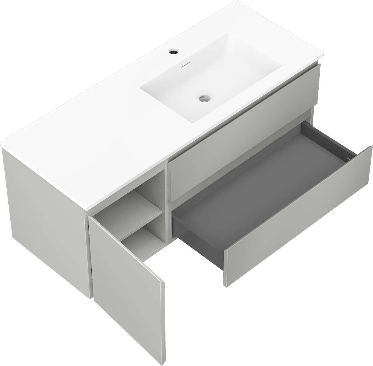 Mexen Orio badkamerkast 120 cm met wastafel Otis rechts, 2S, 1D, grijs mat/wit mat - 91A13-12047-3-BBFFF62-W18P01