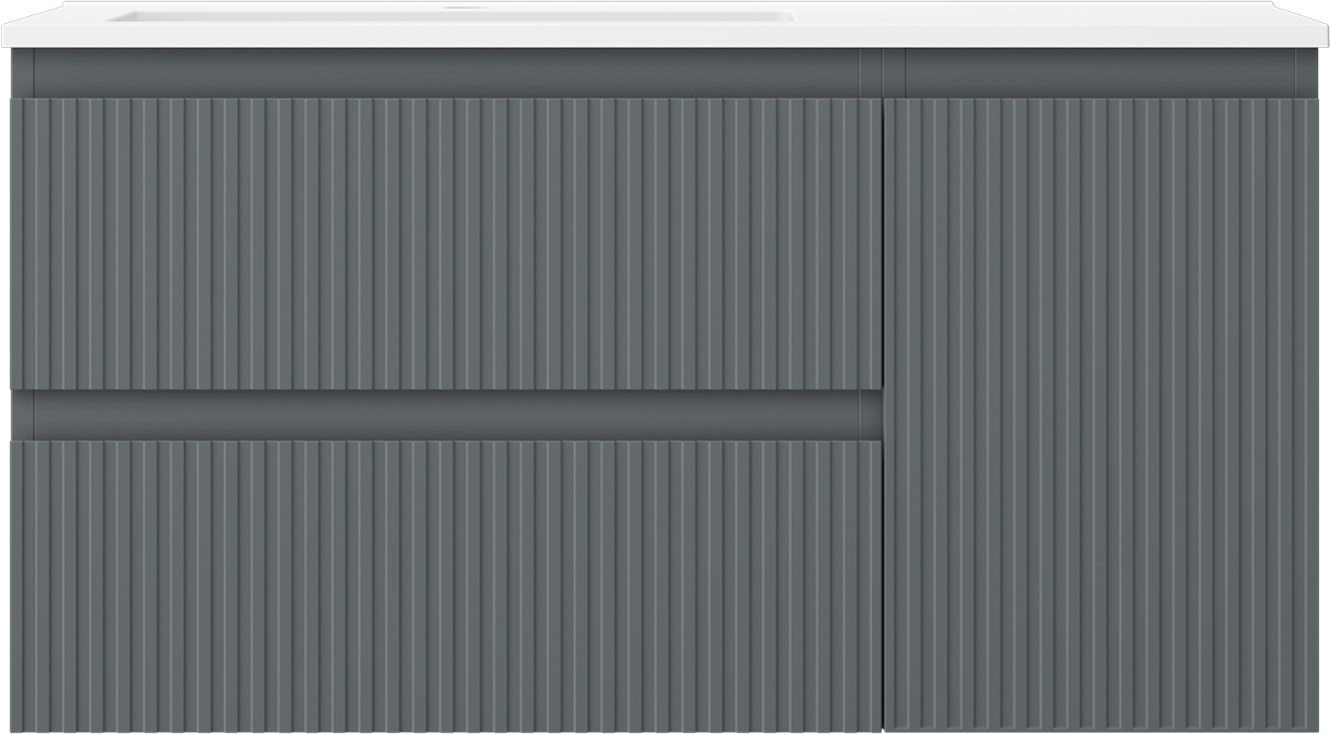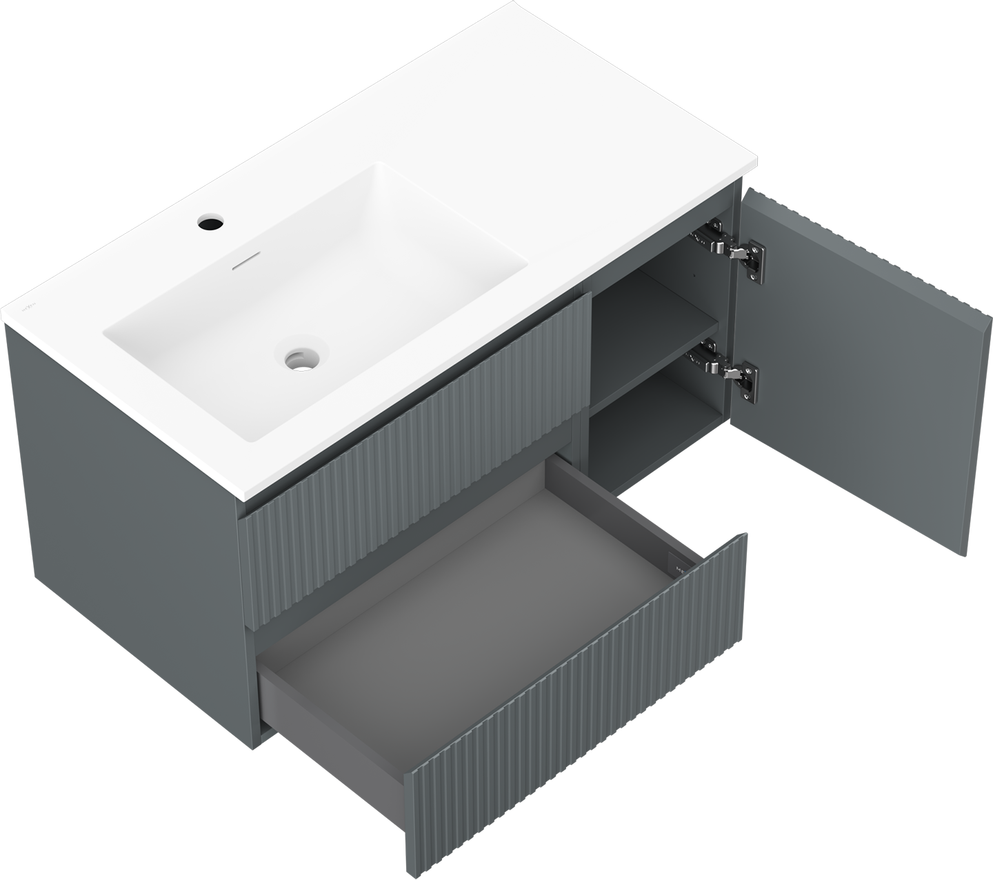 Mexen Rivel badkamerkast 90 cm met Otis wastafel links, 2S, 1D, geribd, grafiet mat/wit mat - 91A23-09047-3-BBFFF66-W18L01