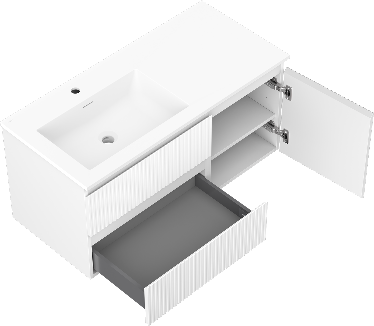Mexen Rivel badkamerkast 100 cm met wastafel Otis links, 2S, 1D, gegroefd, wit mat - 91A23-10047-3-BBFFF01-W18L01