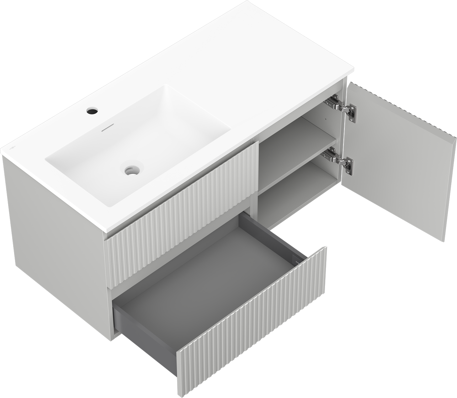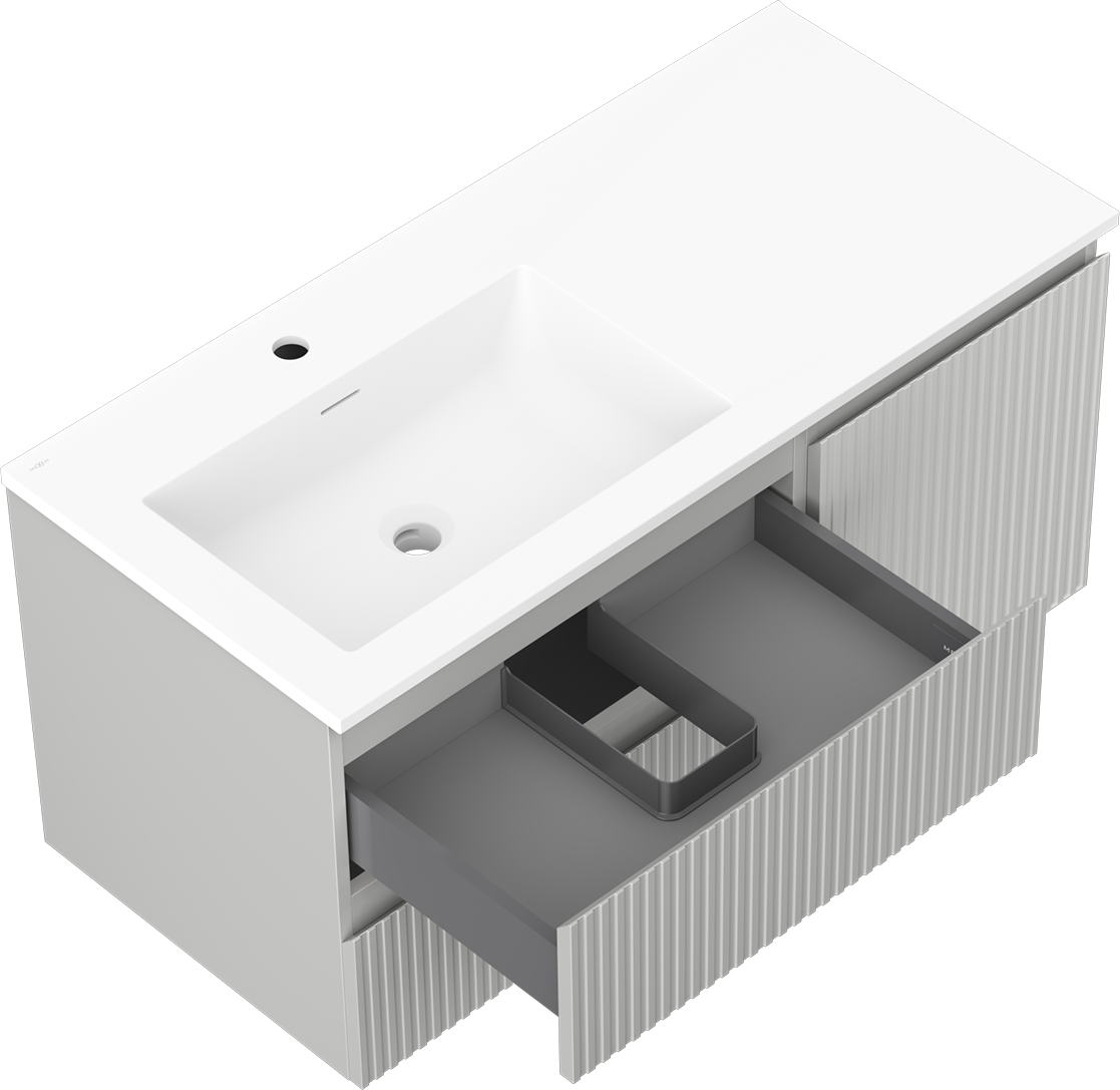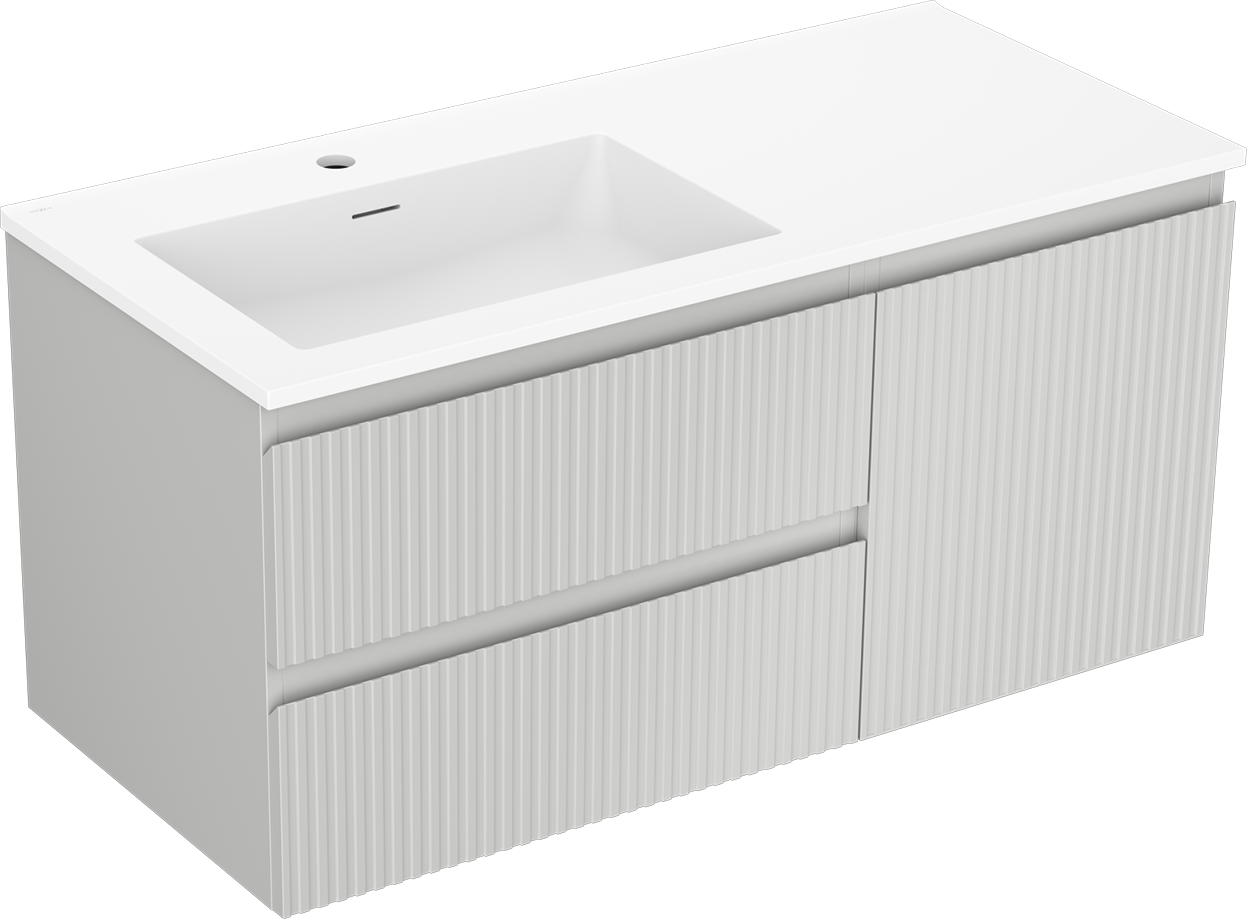 Mexen Rivel badkamerkast 100 cm met wastafel Otis links, 2S, 1D, groef, grijs mat/wit mat - 91A23-10047-3-BBFFF62-W18L01