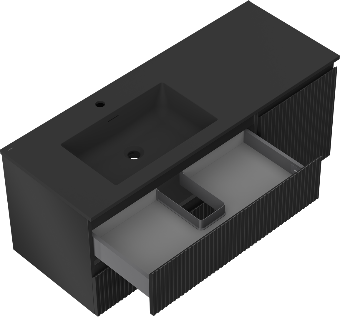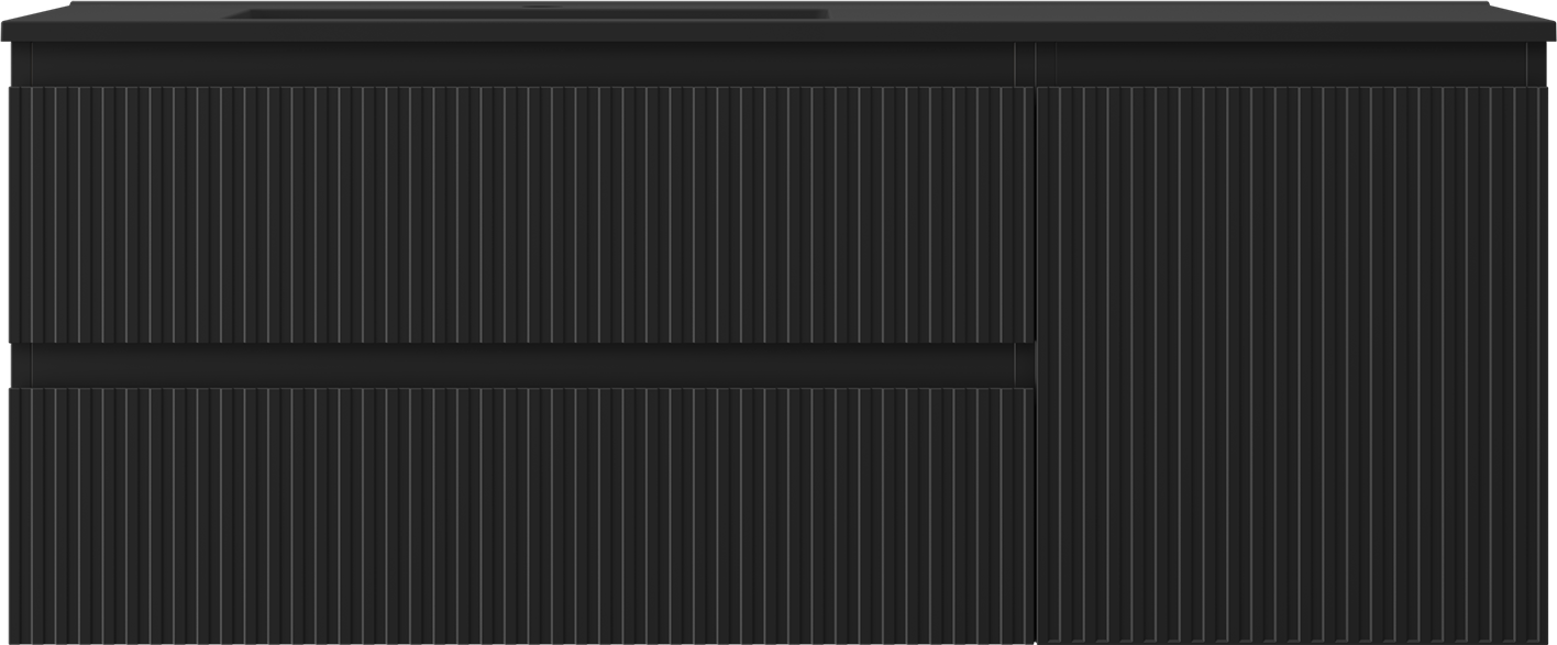 Mexen Rivel badkamerkast 120 cm met wastafel Otis links, 2S, 1D, gegroefd, zwart mat - 91A23-12047-3-BBFFF71-W18L71