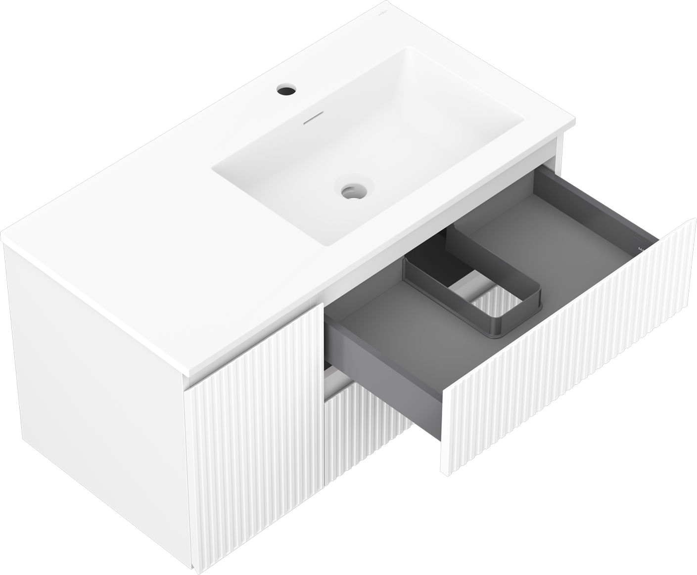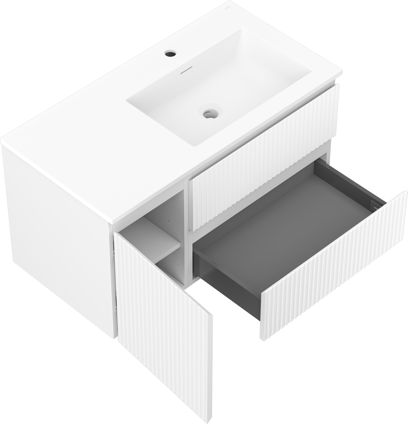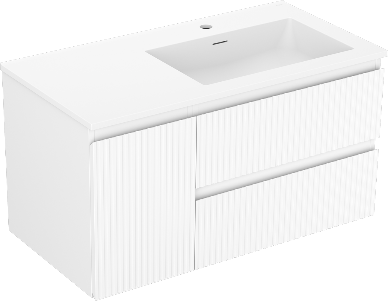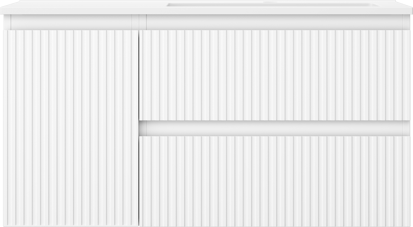 Mexen Rivel badkamerkast 90 cm met wastafel Otis rechts, 2S, 1D, geribbeld, wit mat - 91A23-09047-3-BBFFF01-W18P01